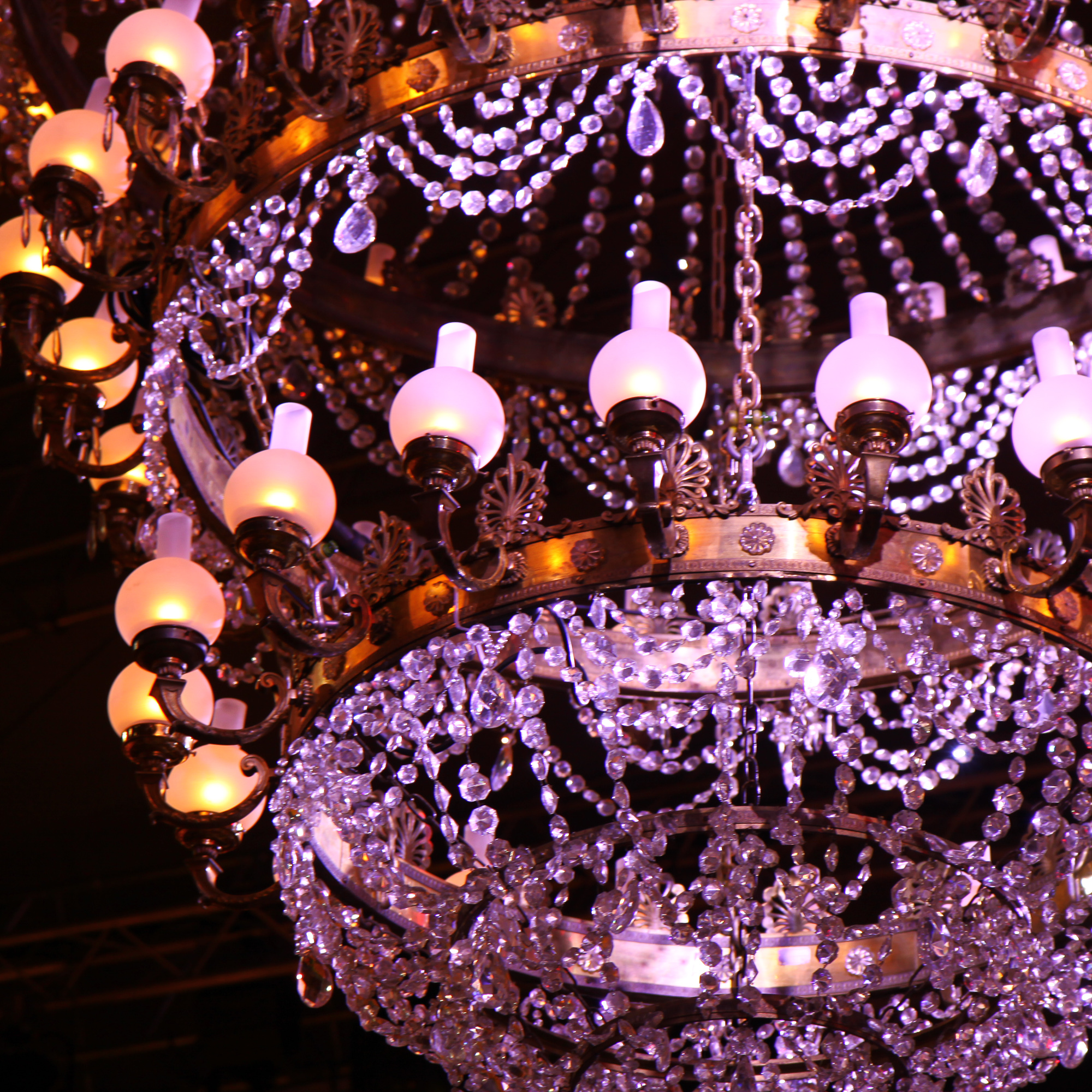 Beschreibung: | großer Kronleuchter bestehend aus 3 Ringkronen mit Kristallbehang und Spezialaufhängung für Bühnen und große Räume |