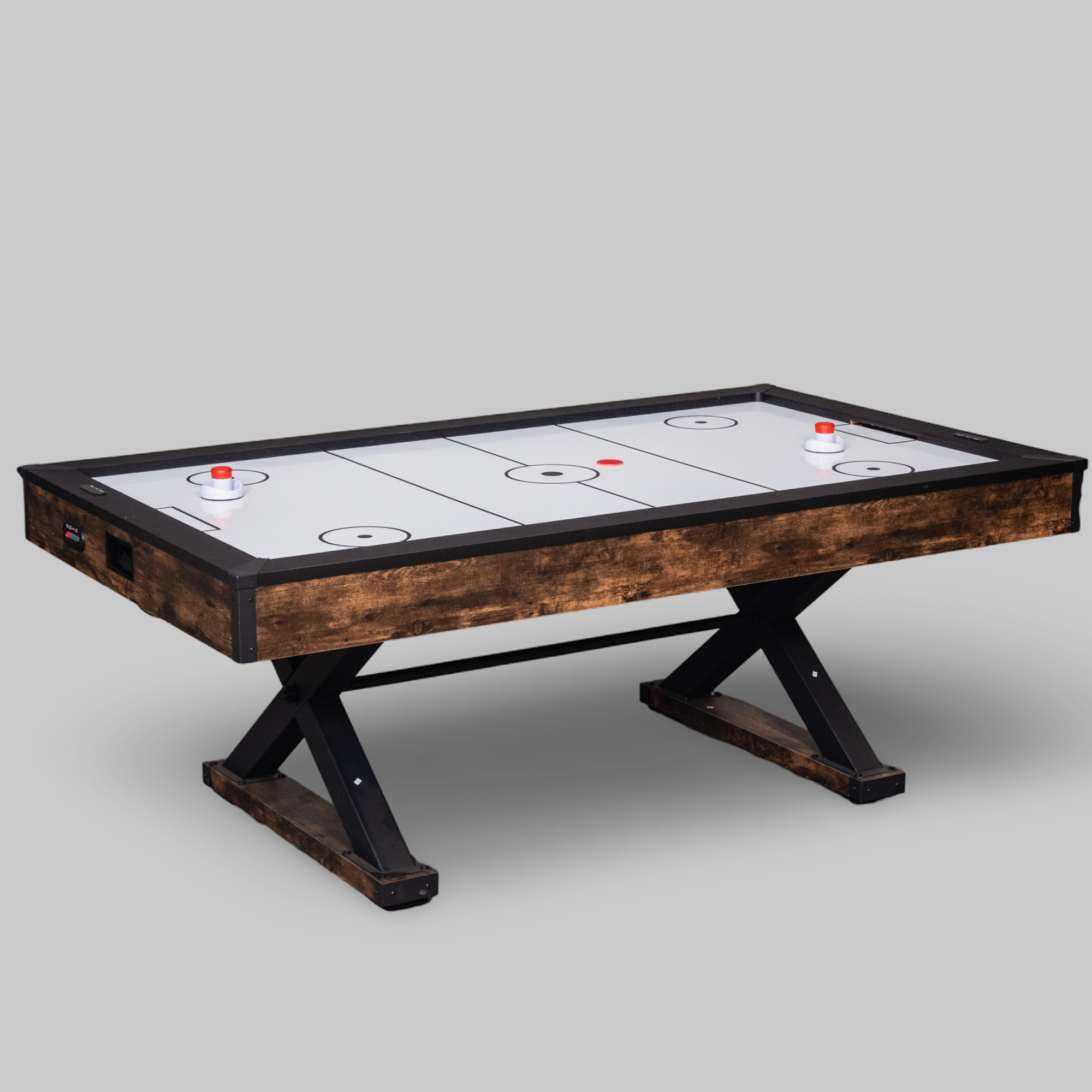 | Beschreibung: | Dieser Airhockey-Tisch verfügt über ein einzigartig-rustikales Design. Das verbaute Gebläse sorgt für optimale Gleiteigenschaften der Spielpucks auf dem Spielfeld. Das elektronische Zählwerk erleichertert das Spielvergnügen. So hast du immer den Spielstand im Überblick. Außerdem kannst du zwischen unterschiedlichen Spielzeitlängen wählen sowie die integrierten Soundeffekte ein- oder ausschalten. |
