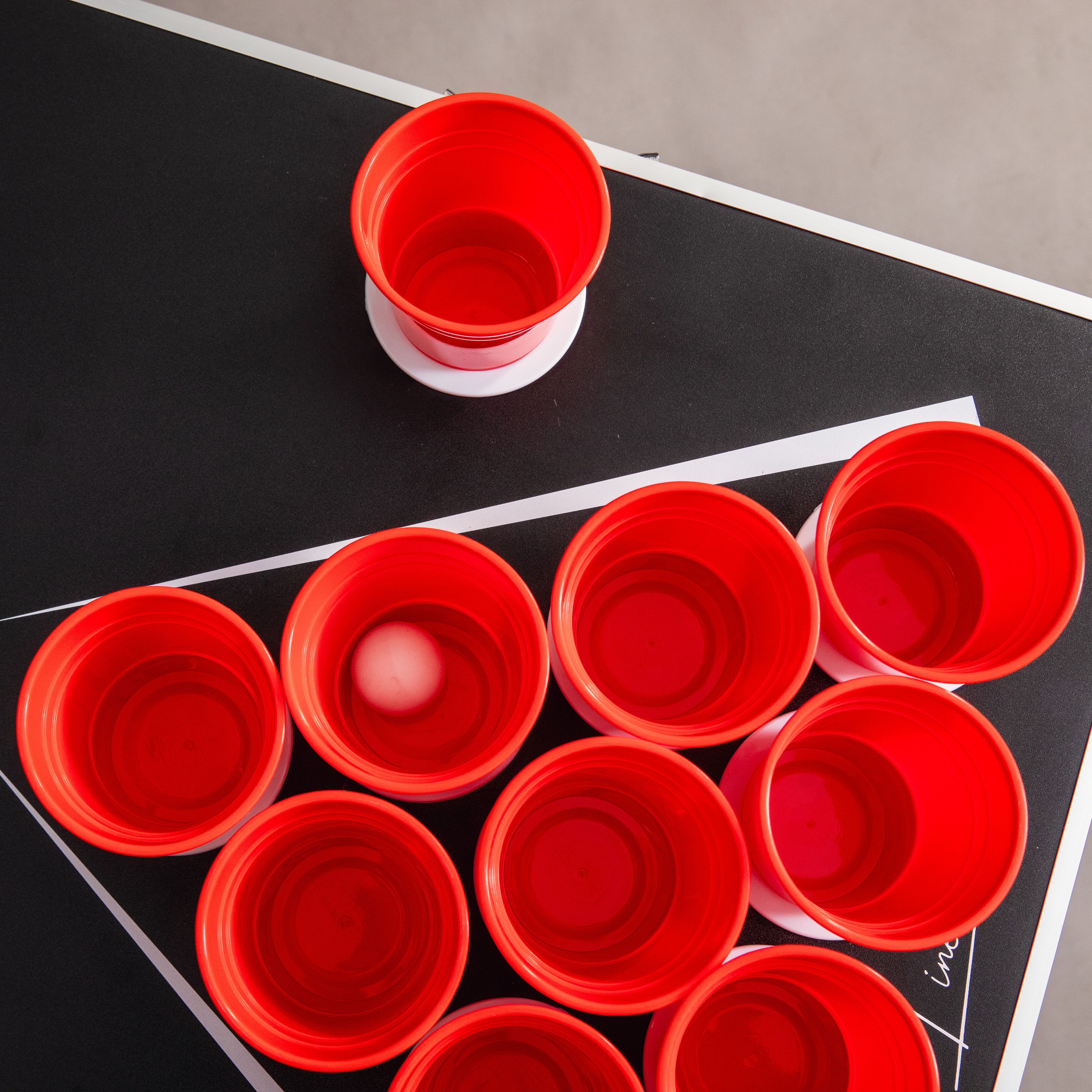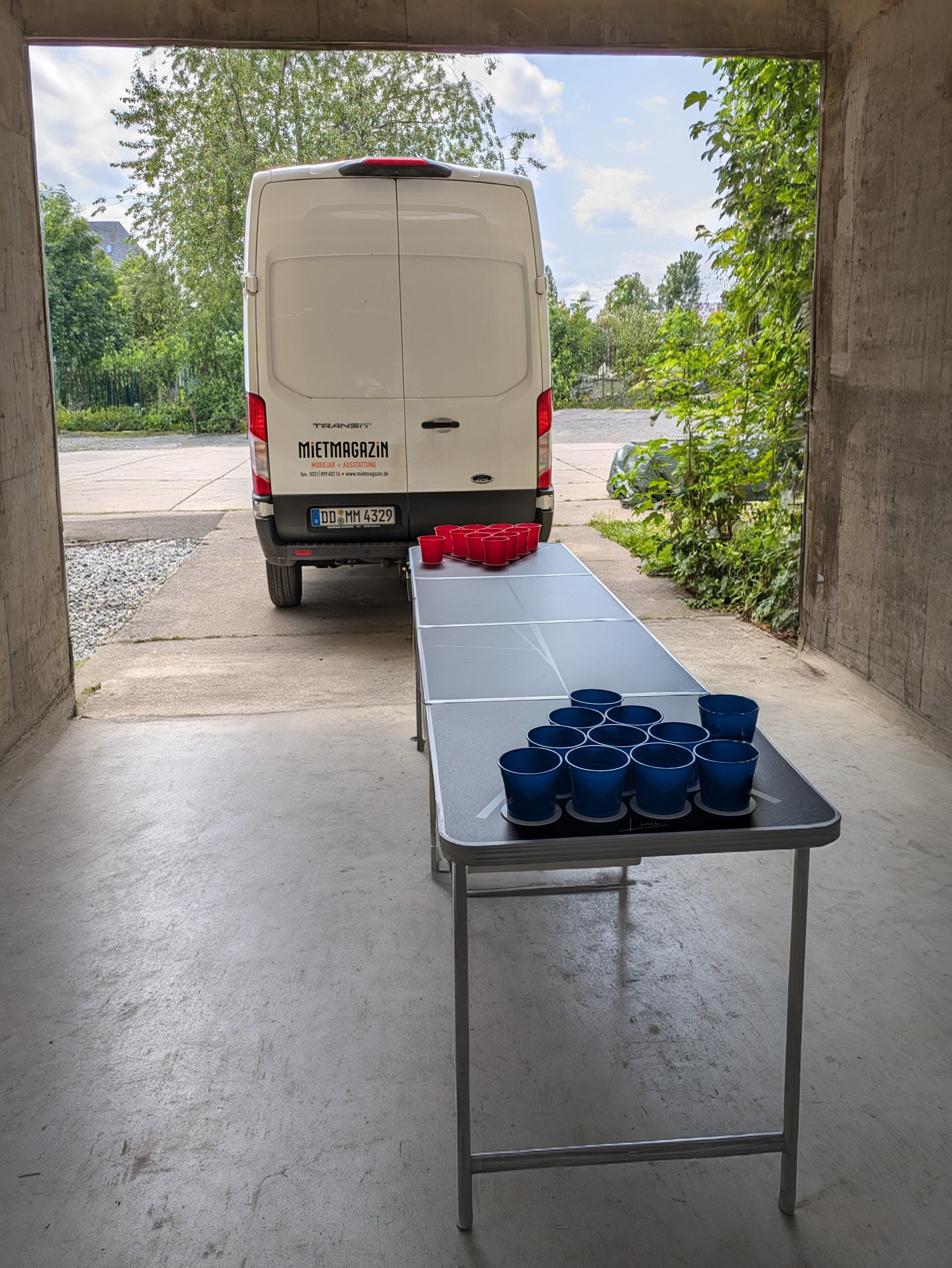 klappbar, mit Becherhaltern; inkl. 4 Tischtennisbälle, 22 Mehrwegbecher