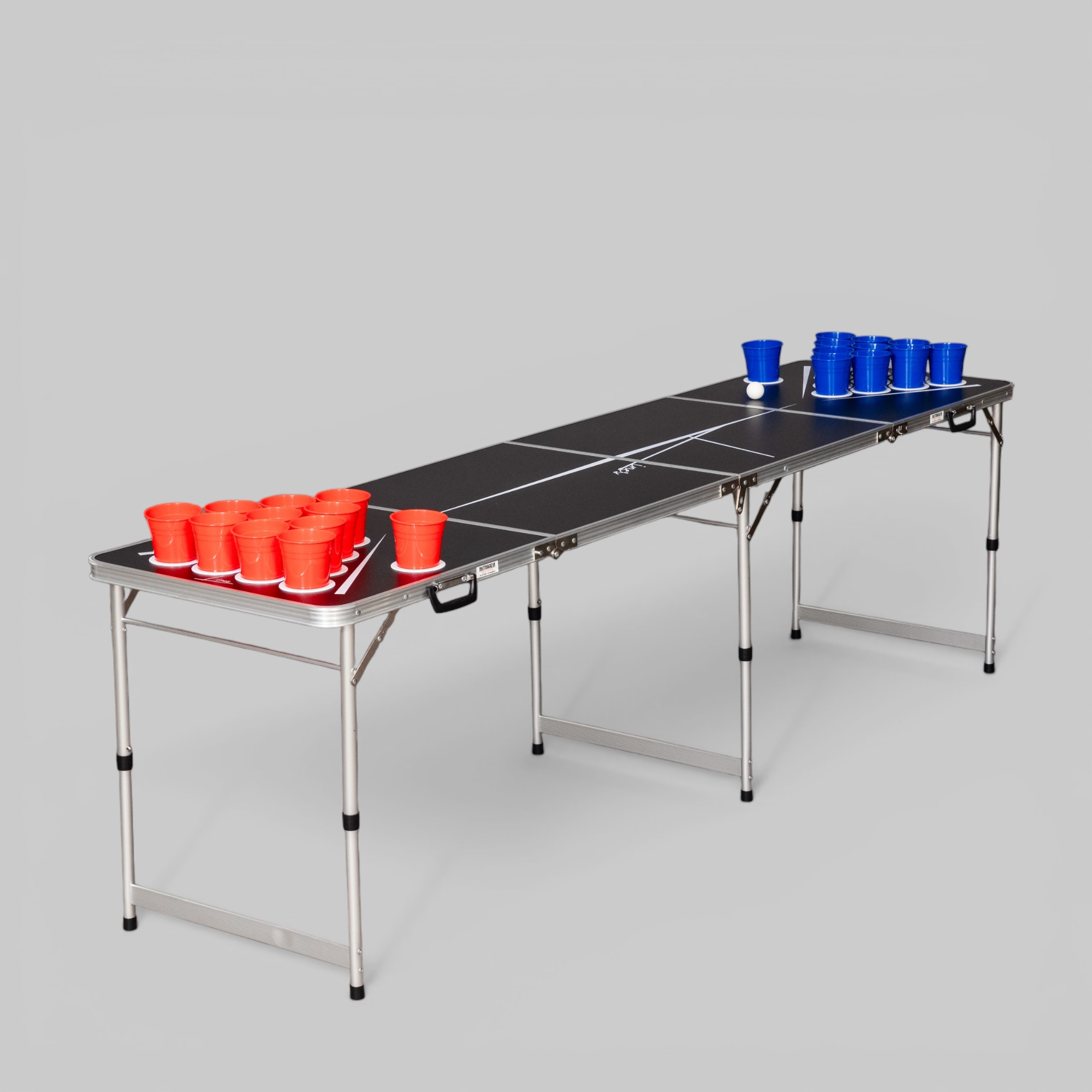 Beschreibung:Bierpong-Tisch inkl. Becherhaltern, 22 Mehrwegbechern, 4 Tischtennisbällen; klappbar
