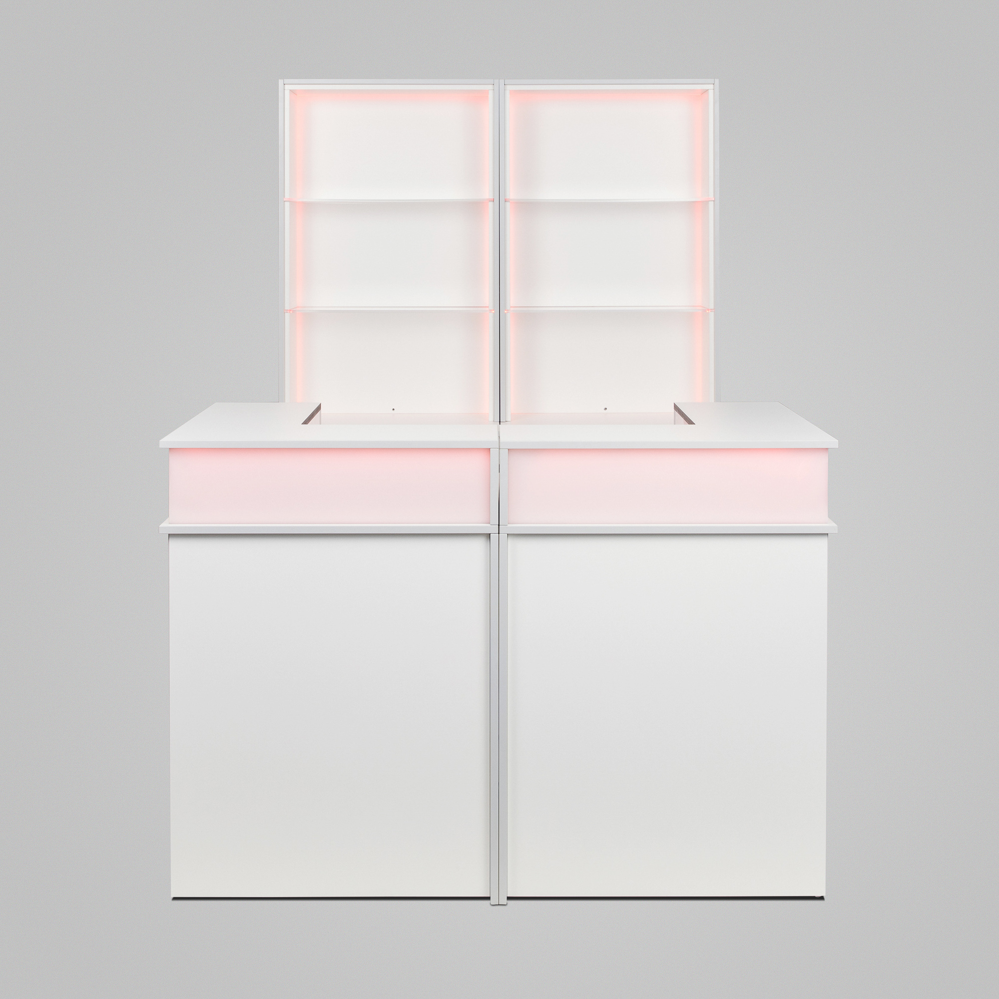 Farbe:Korpus weiß, Kante lichtgrau, LED Beleuchtung mit steuerbarem Farbwechsel