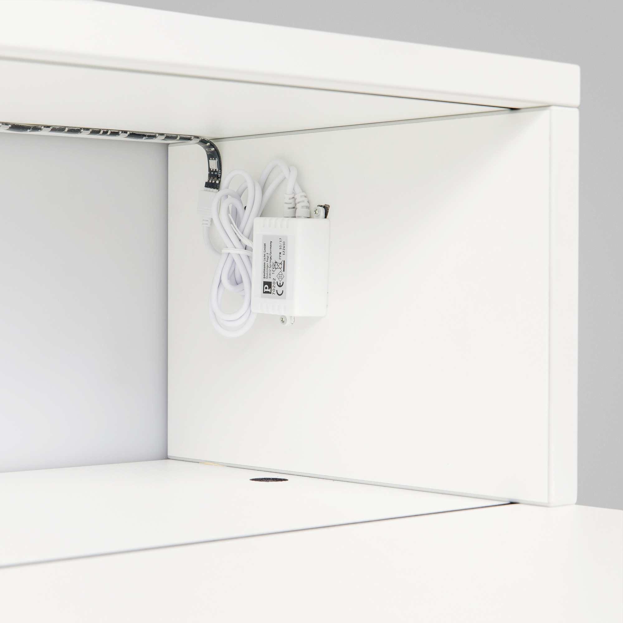 Farbe:Korpus weiß, Kante lichtgrau, LED Beleuchtung mit steuerbarem Farbwechsel