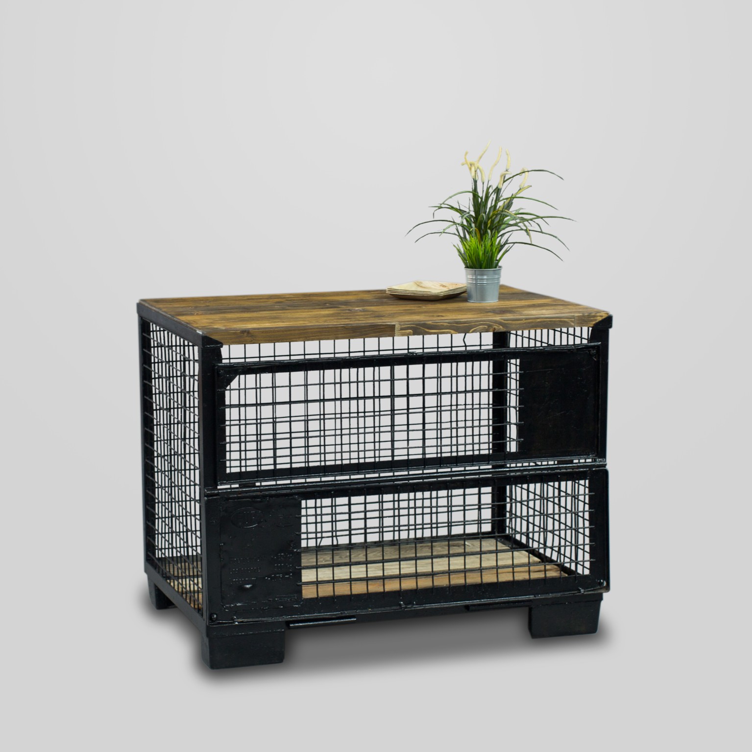 HxBxT: 0,97x1,24x0,835 m; Platte Echtholz braun; Gestell Gitterbox Stahl schwarz; Platte Echtholz braun