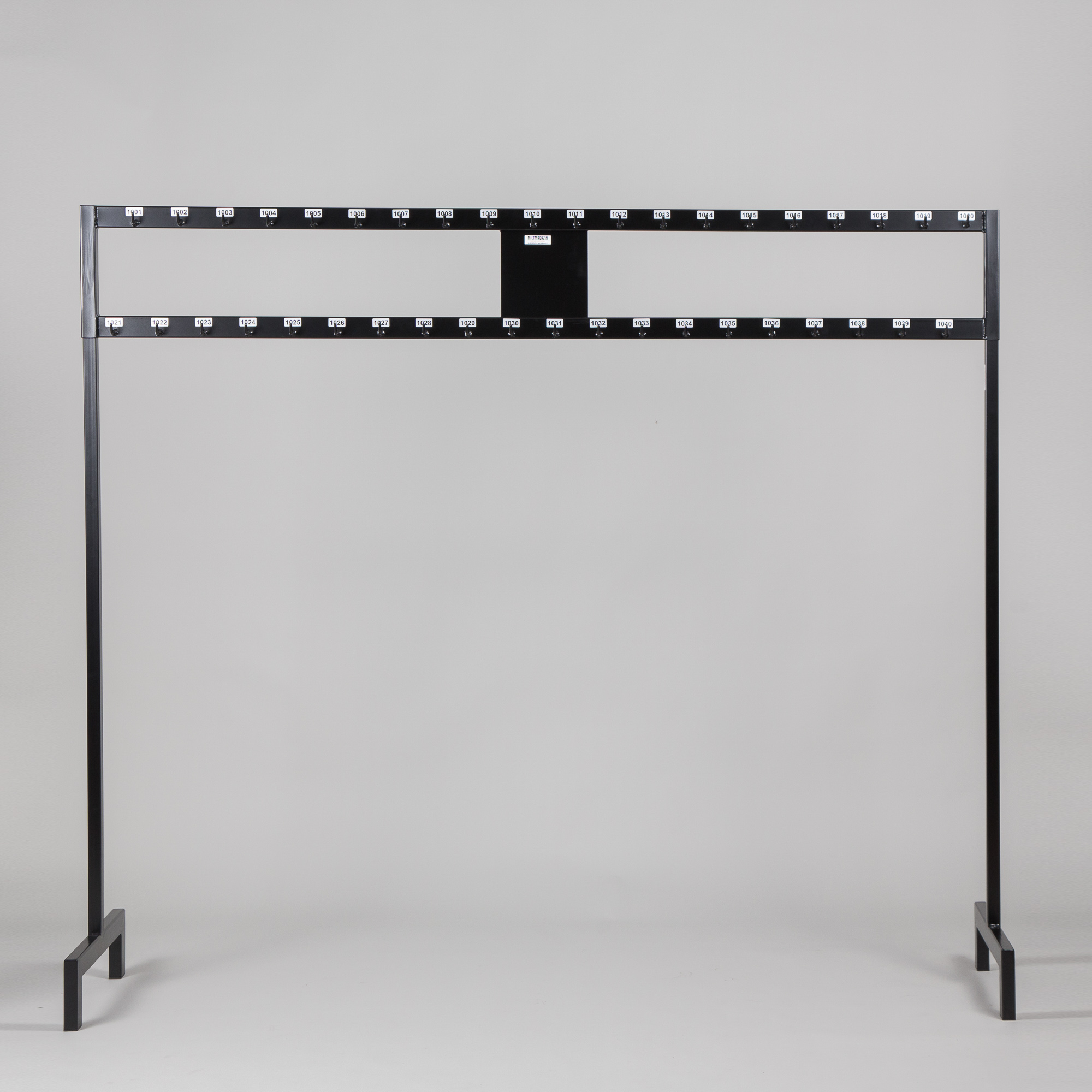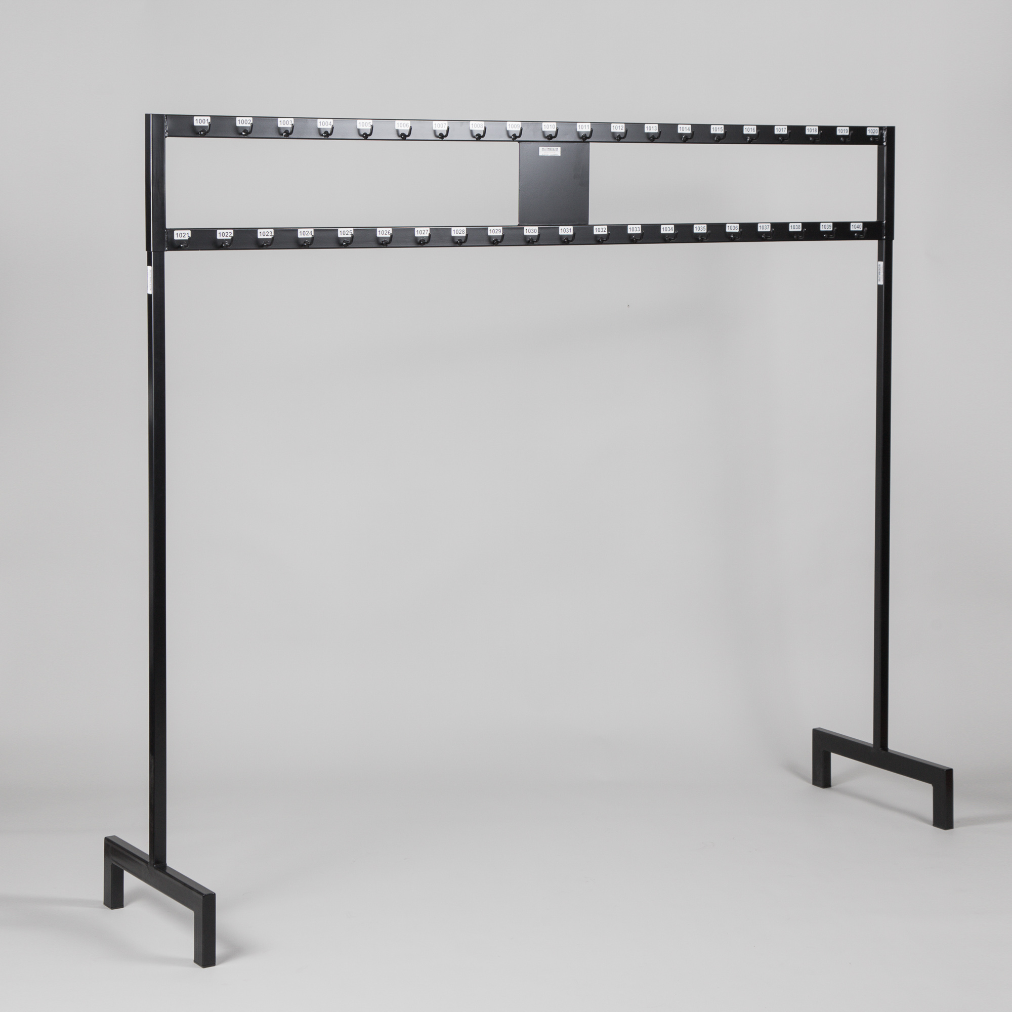Beschreibung: | Garderobenständer mit beidseitigen Haken, insgesamt 80 Haken pro Garderobenständer, inkl. Nummerierung am Garderobenständer, belastbar bis ca. 300kg, nicht rollbar |