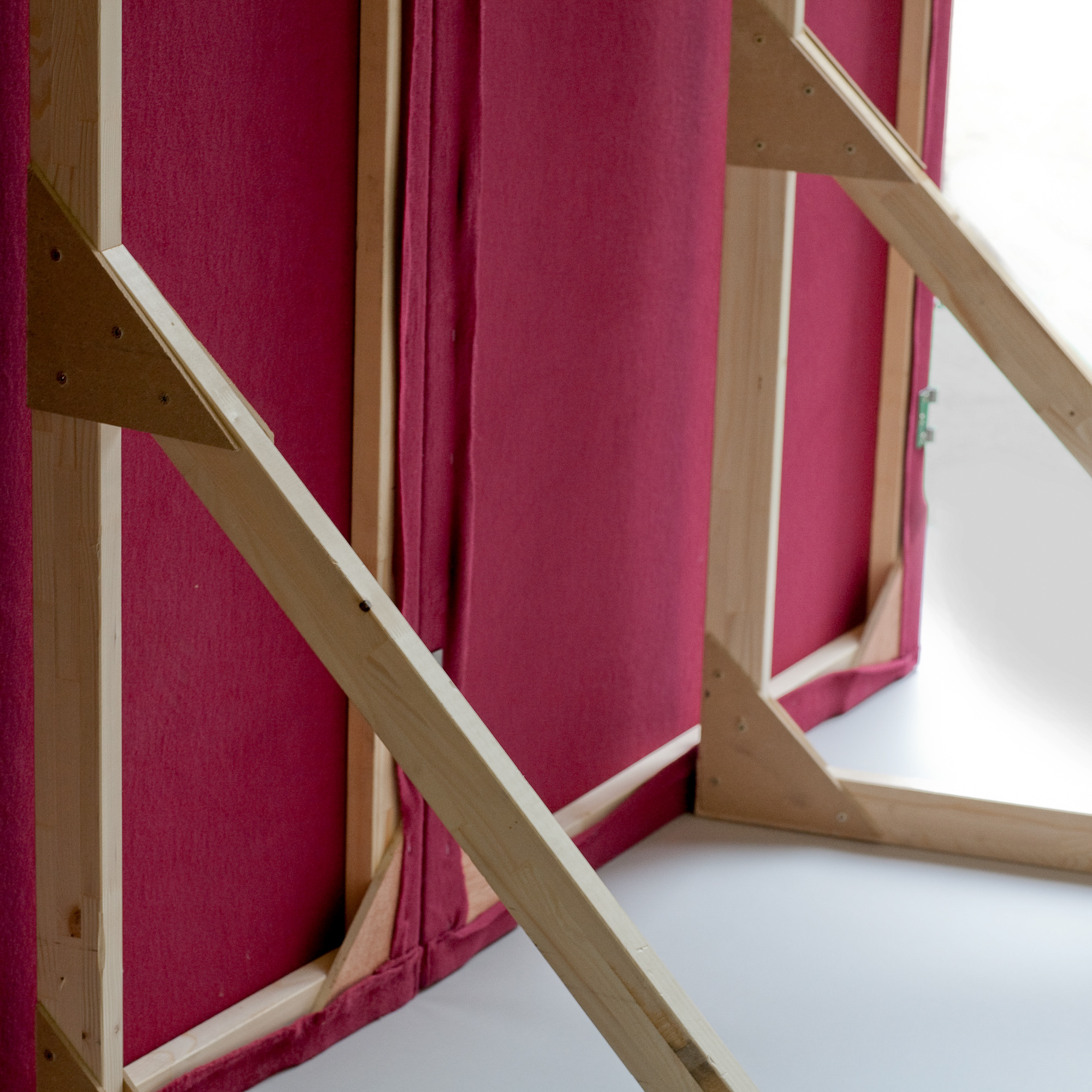 HxB: 2,50x1,00m; Bühnenmolton bordeaux; blickdicht; inkl. Stütze