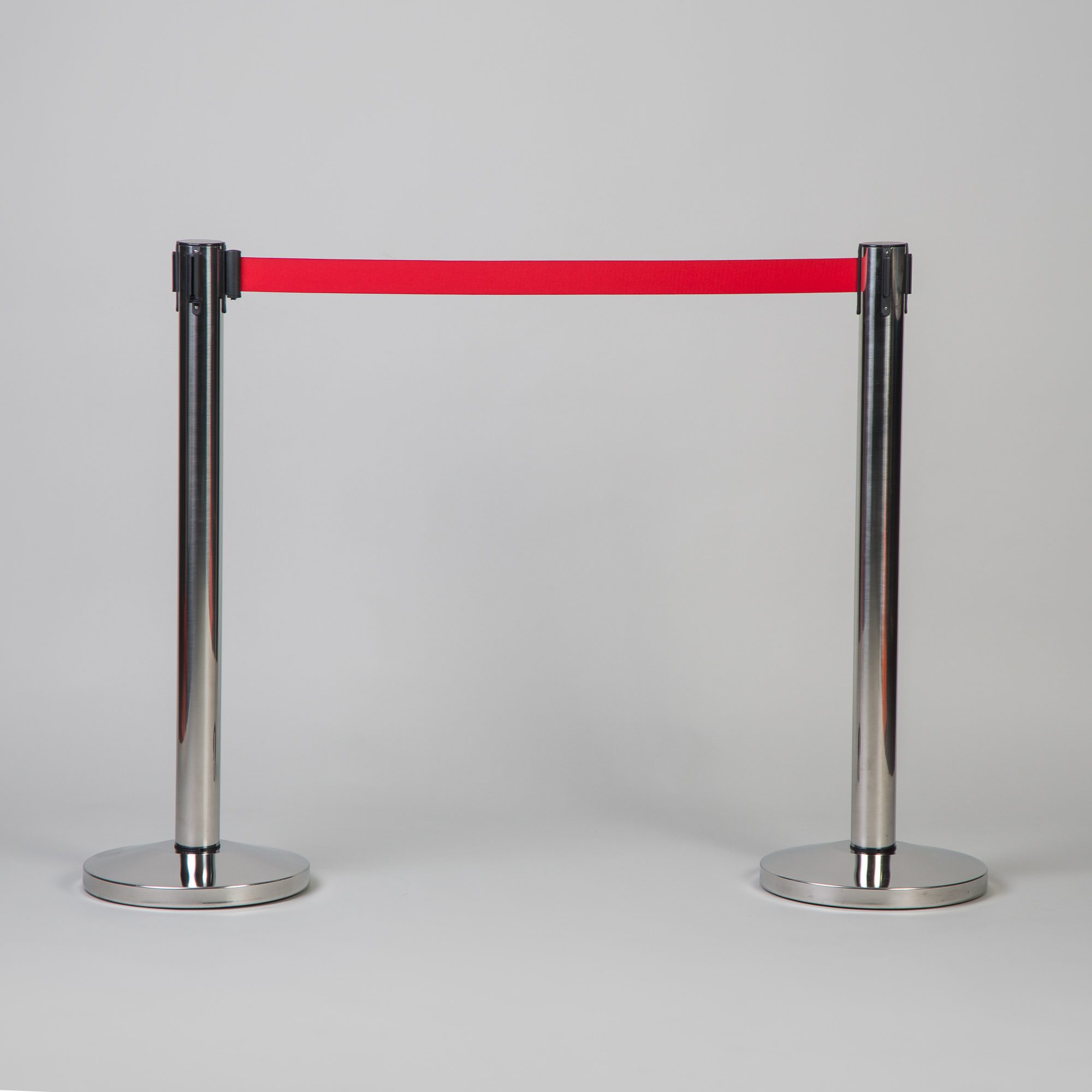 Beschreibung:modernes Absperr- bzw. Personenleitsystem mit farbigem Gurtband und automatischer Aufwicklung