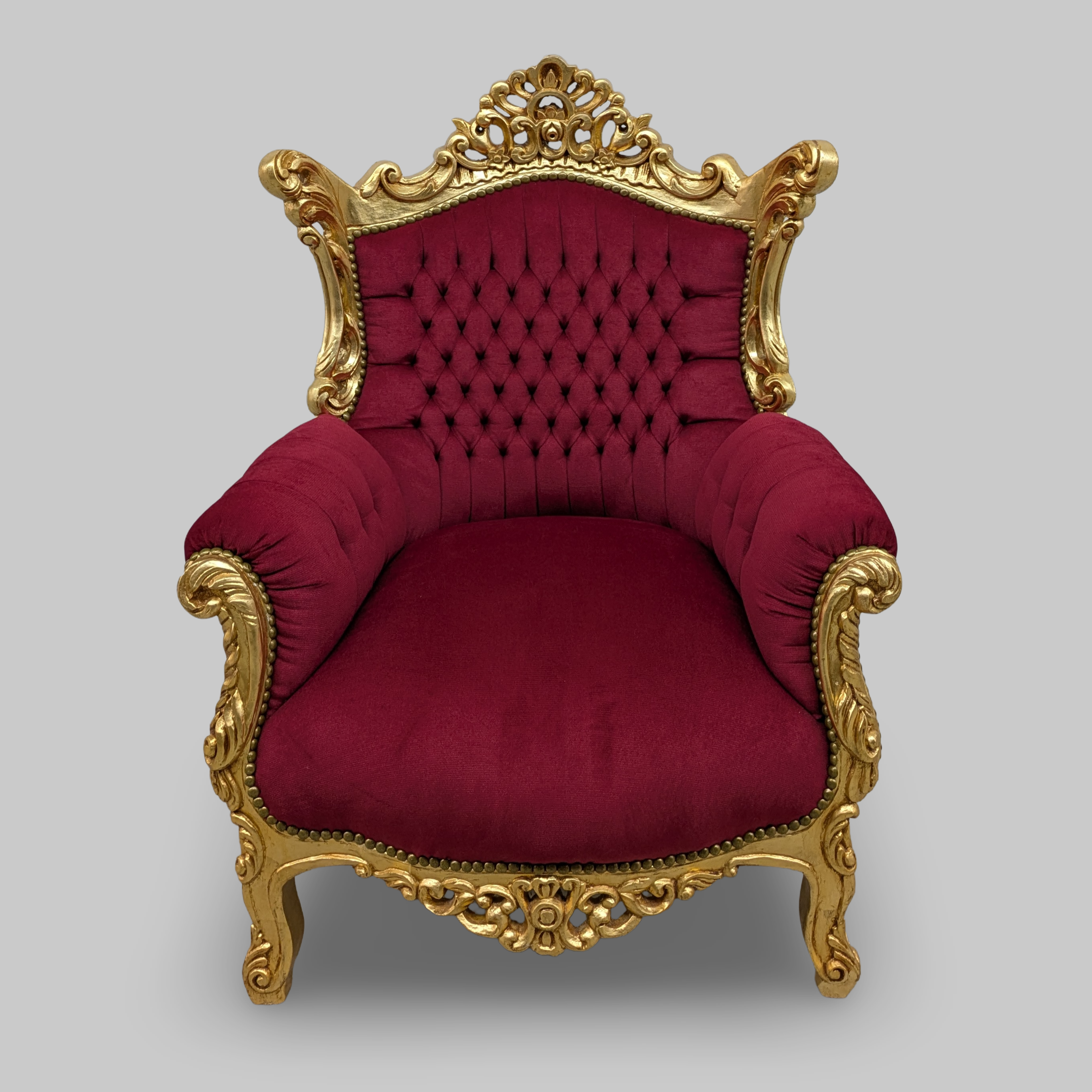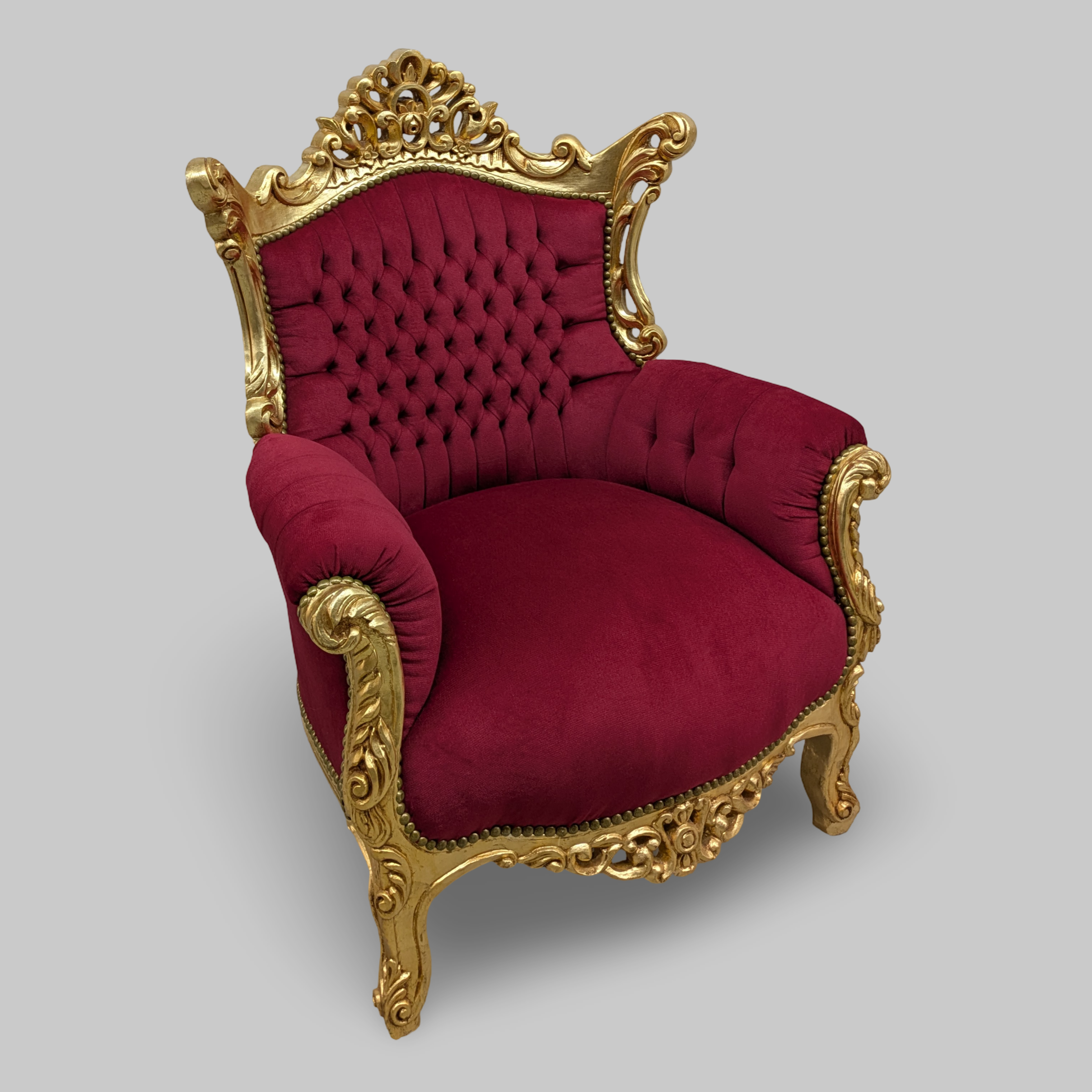 | Beschreibung: | Dieser Barocksessel ist ein authentisch handgefertigtes Antik Stil Replikat. Bezogen ist er mit einem edlem Samtstoff aus 100% Baumwolle. Der golden lackierte Massivholzrahmen mit seinen aufwendigen Verzierungen erschafft im Zusammenspiel mit dem Bordeauxfarbenen Samtbezug ein opulentes Dekomöbel. |