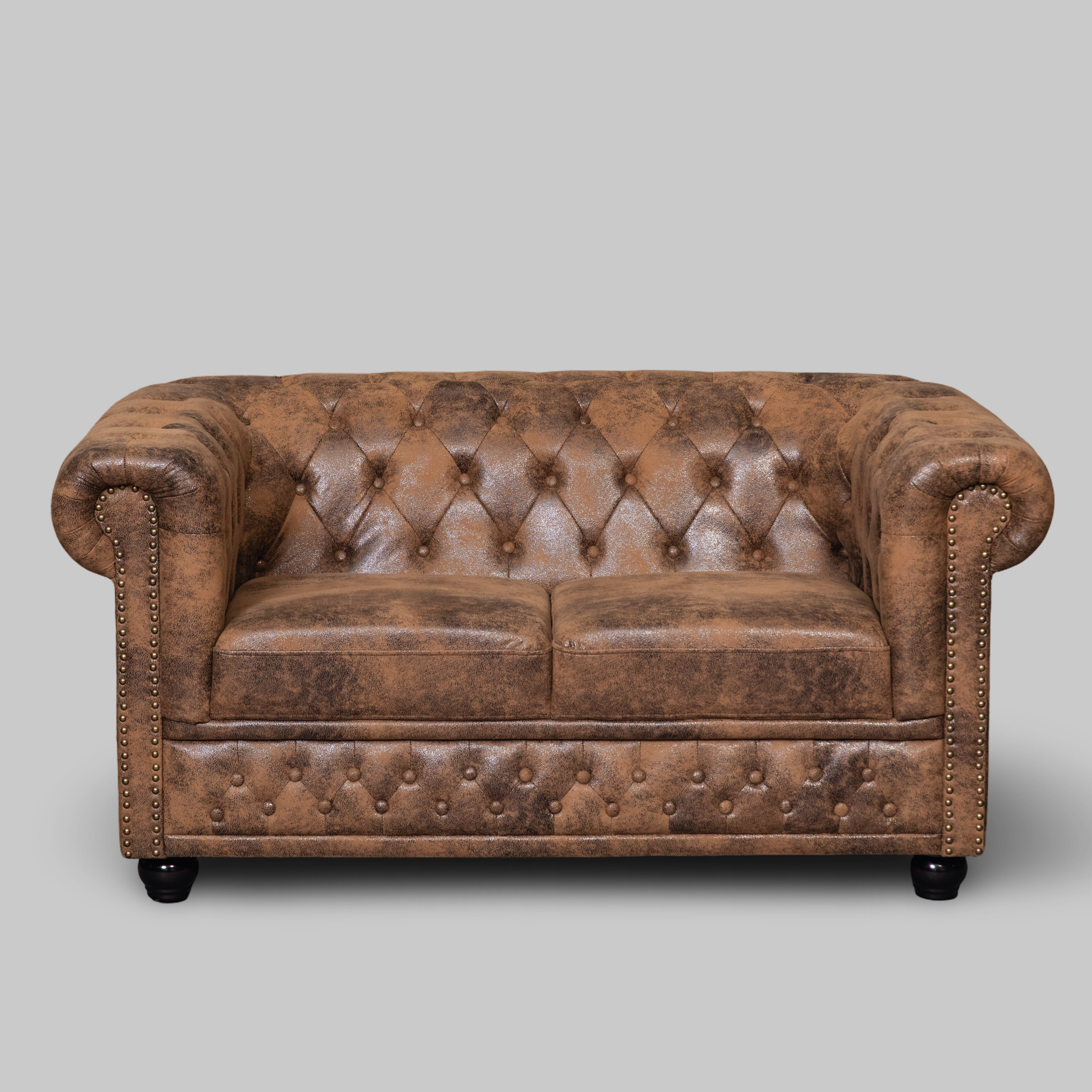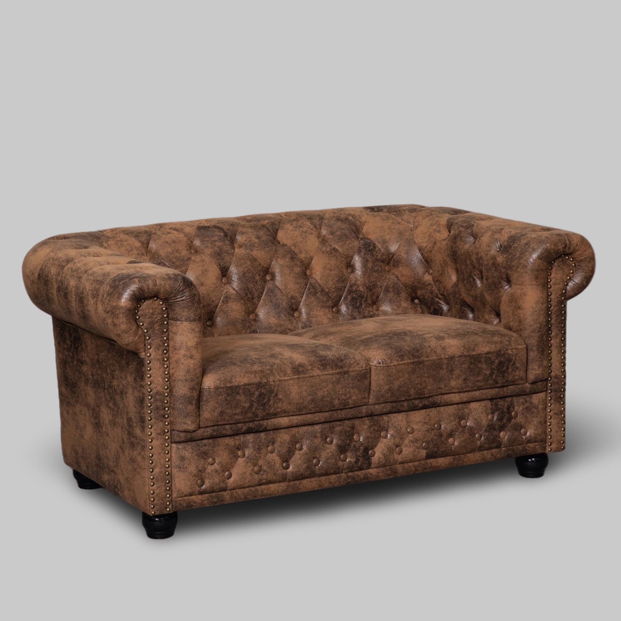 SHxBxT: 0,43x1,50x0,88m; Chesterfield 2-Sitzer Microfaser Fb. braun; Füße Holz