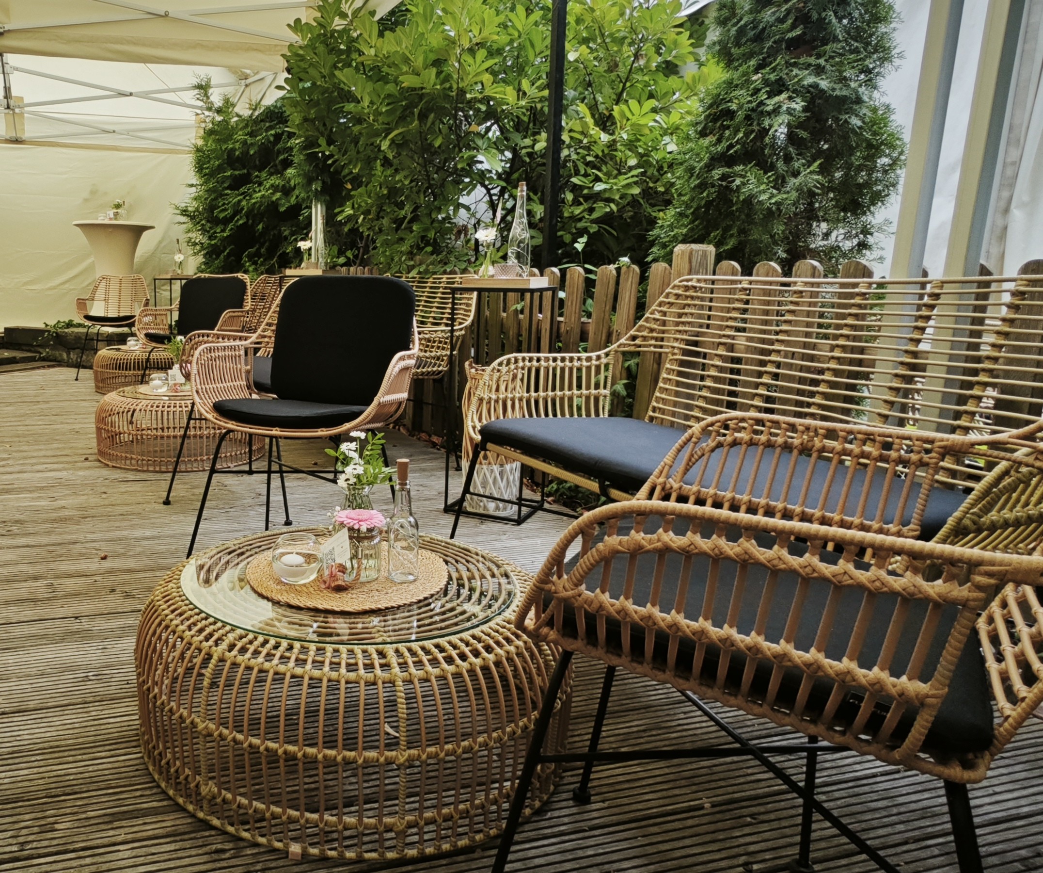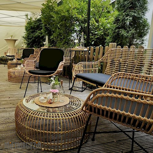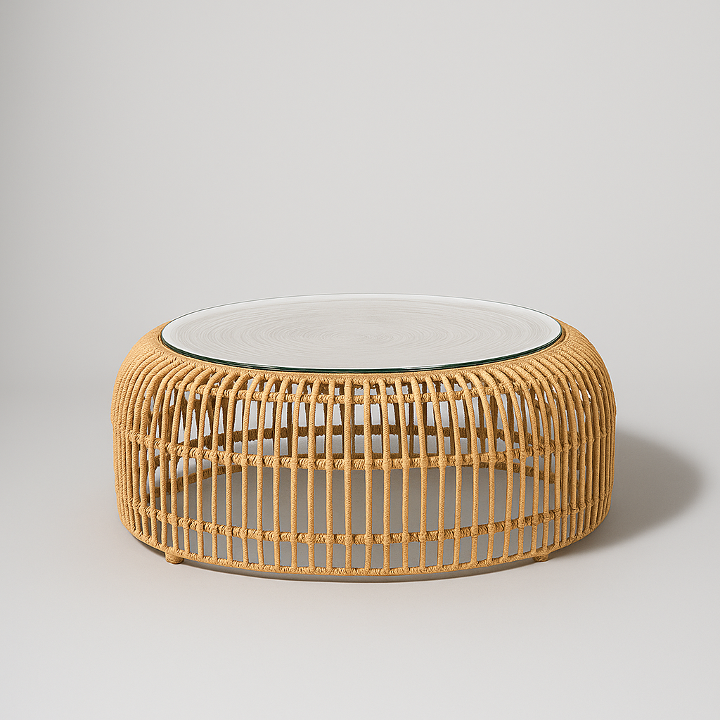 Beschreibung:Loungetisch im Boho-Style mit Glasplatte