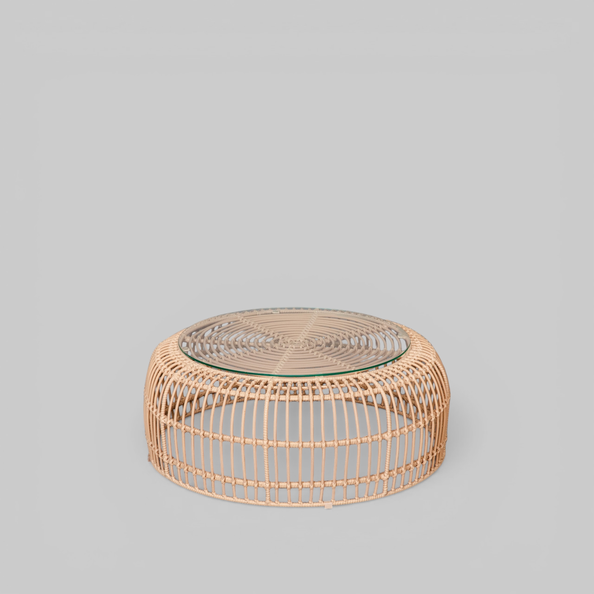 HxØ: 0,3x0,8m; PE Rattan sand; Gestell: Stahl; inkl. Glasplatte