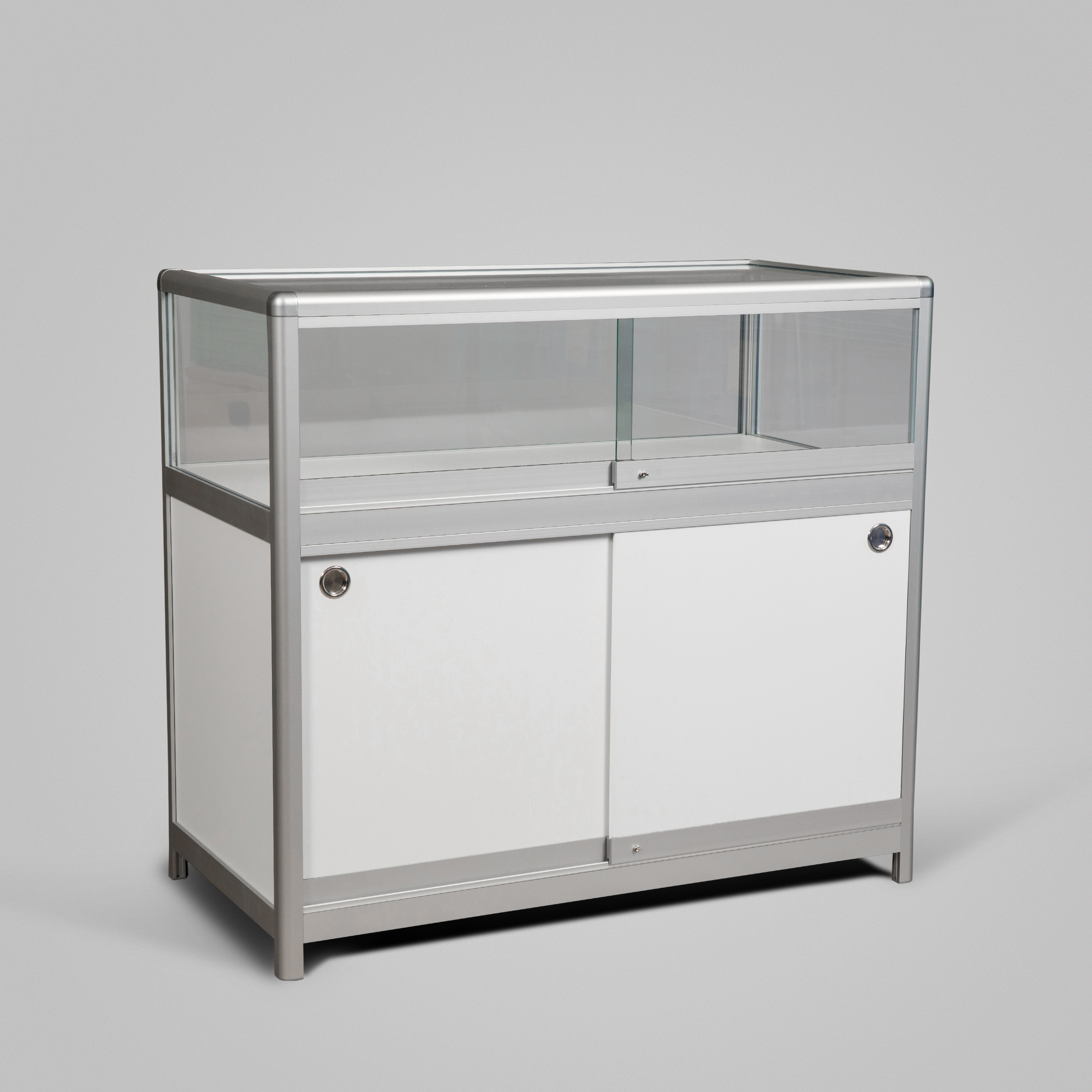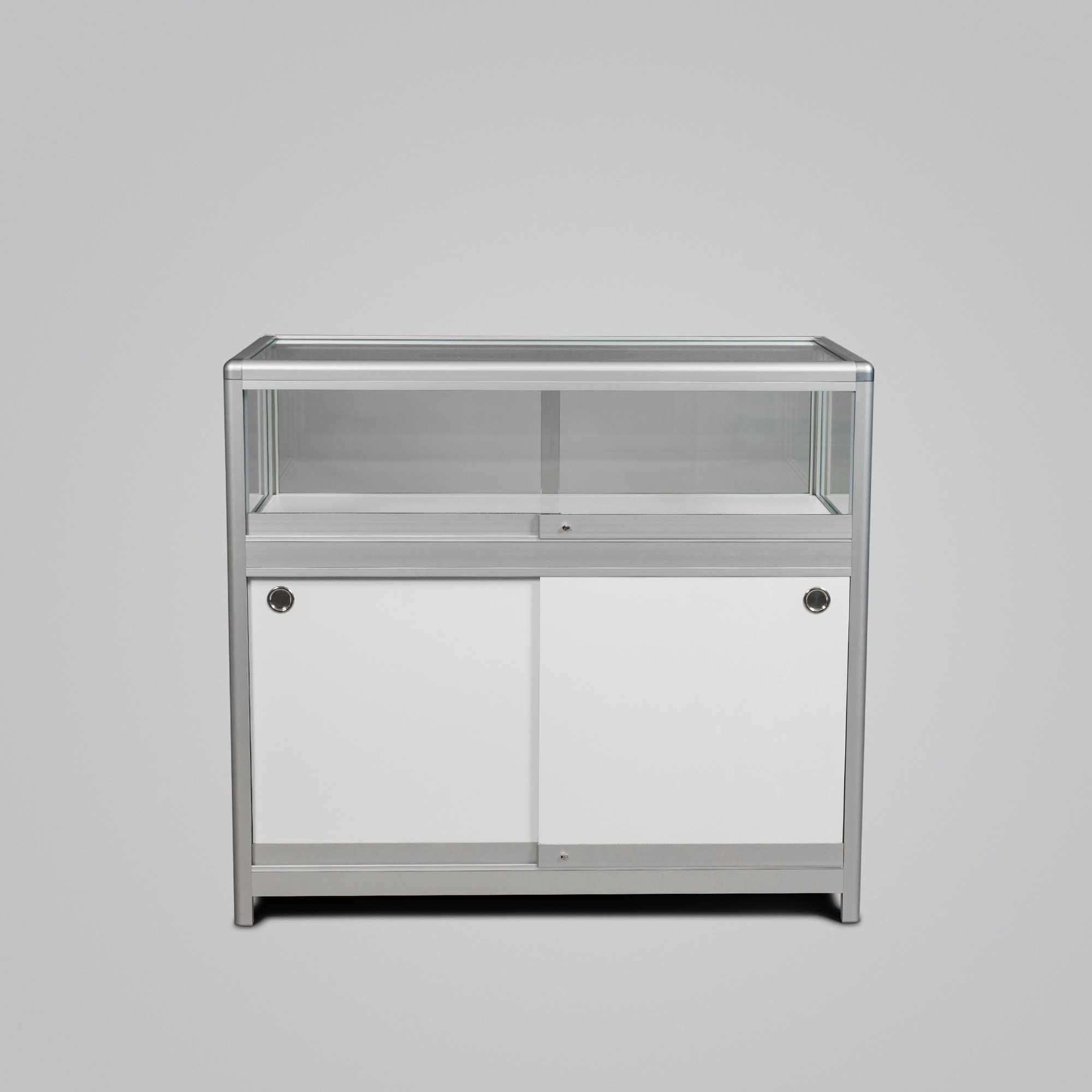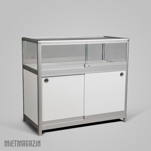 HxBxT: 0,91x0,99x0,53m; Sideboard weiß, Vitrine Glas; abschließbar