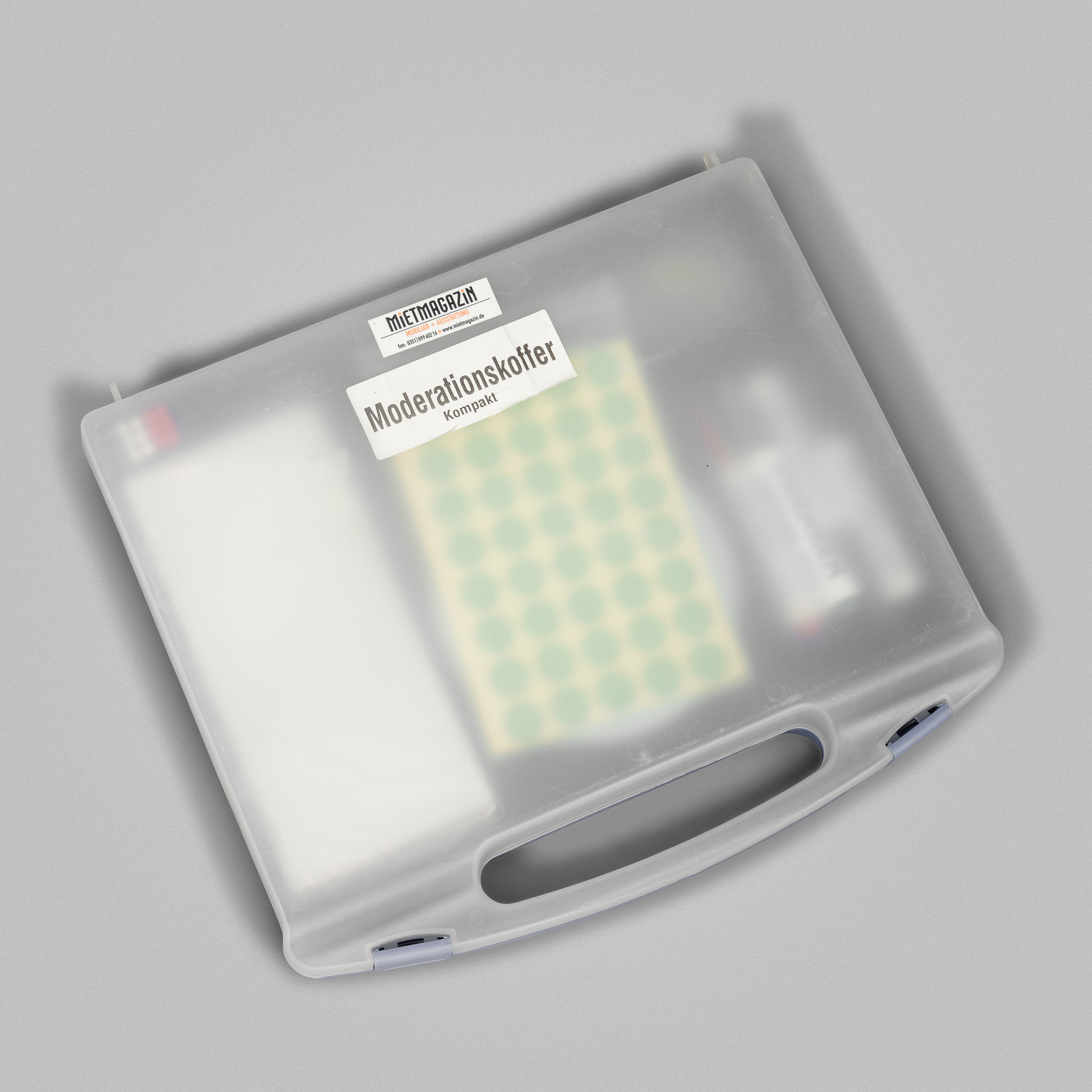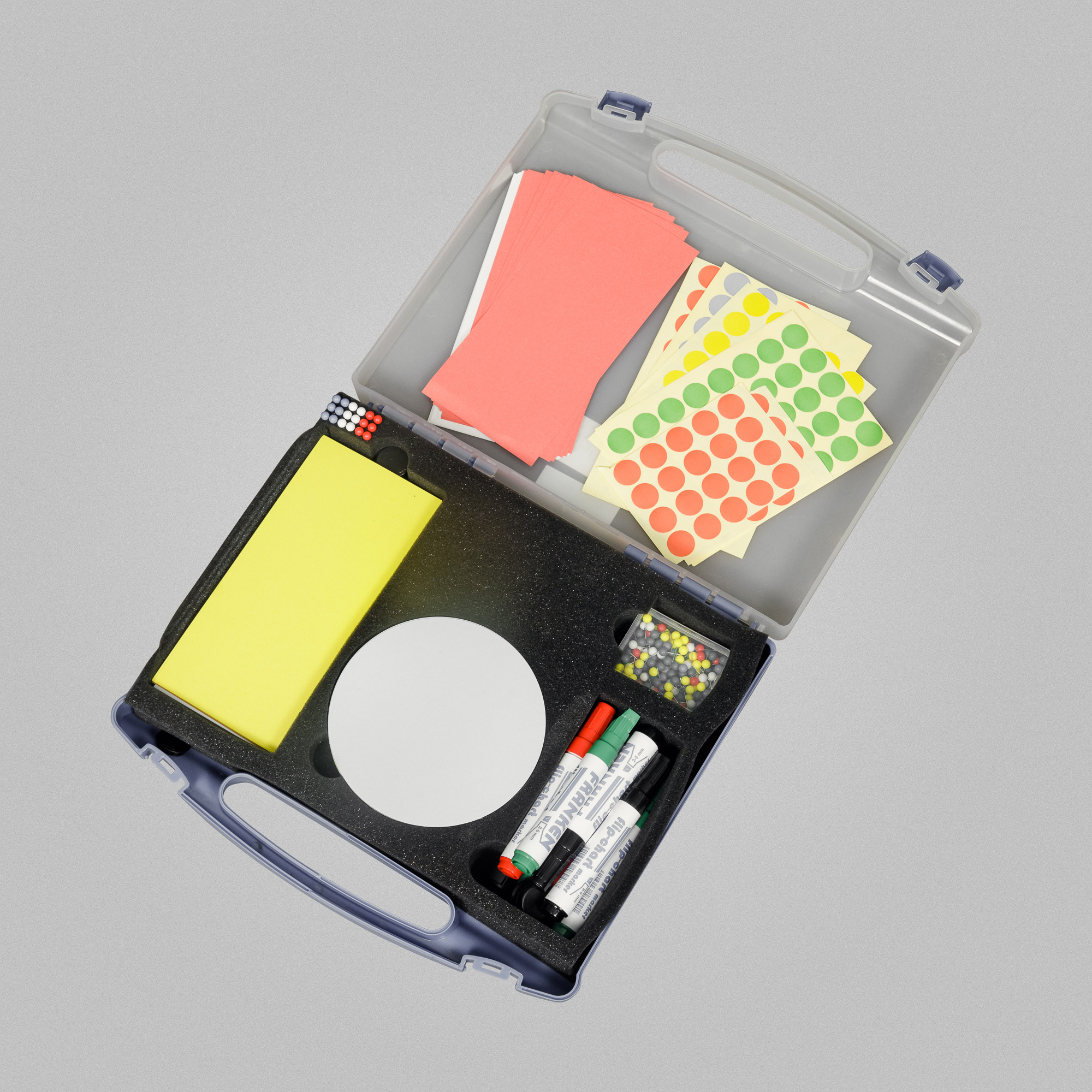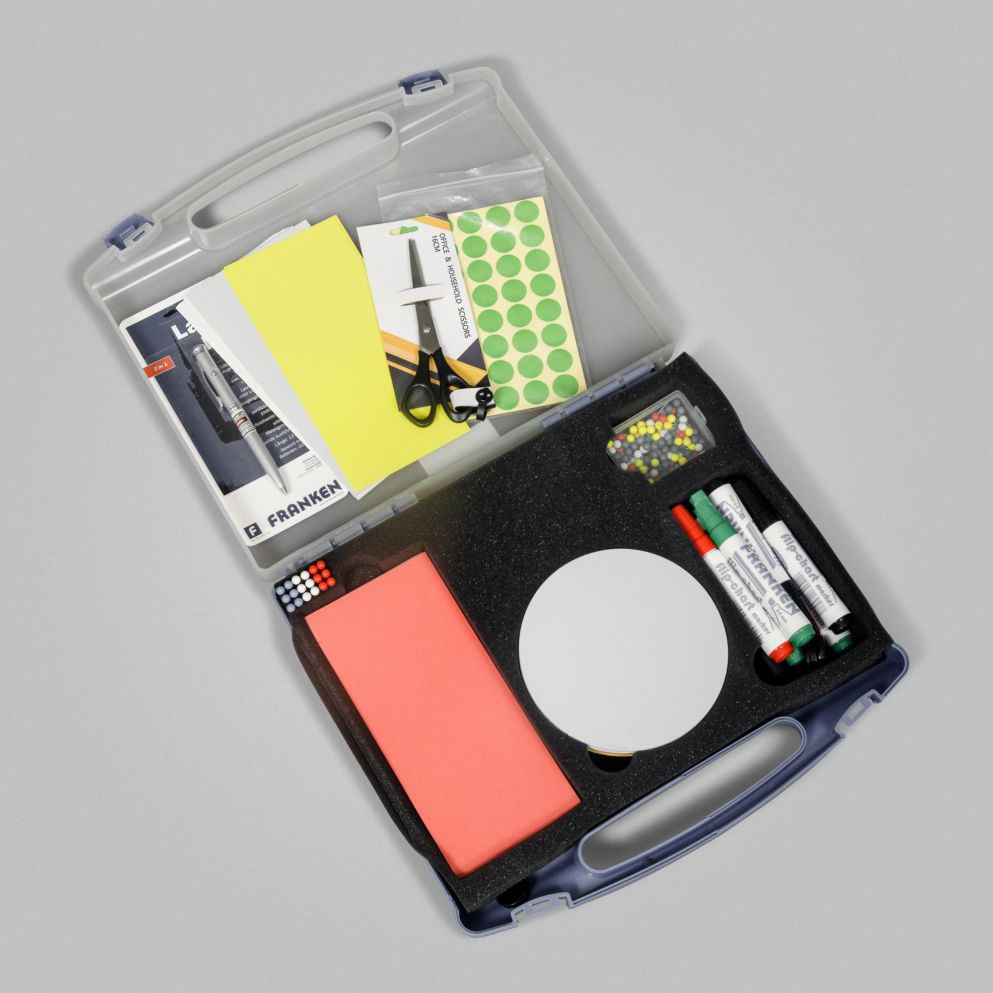 Beschreibung: | Moderatorenkoffer inkl. Schere, Flipchartstifte, Laserpointer, Markierungsnadeln, Markierungspunkte, Moderationskarten versch. Größen und Formen |