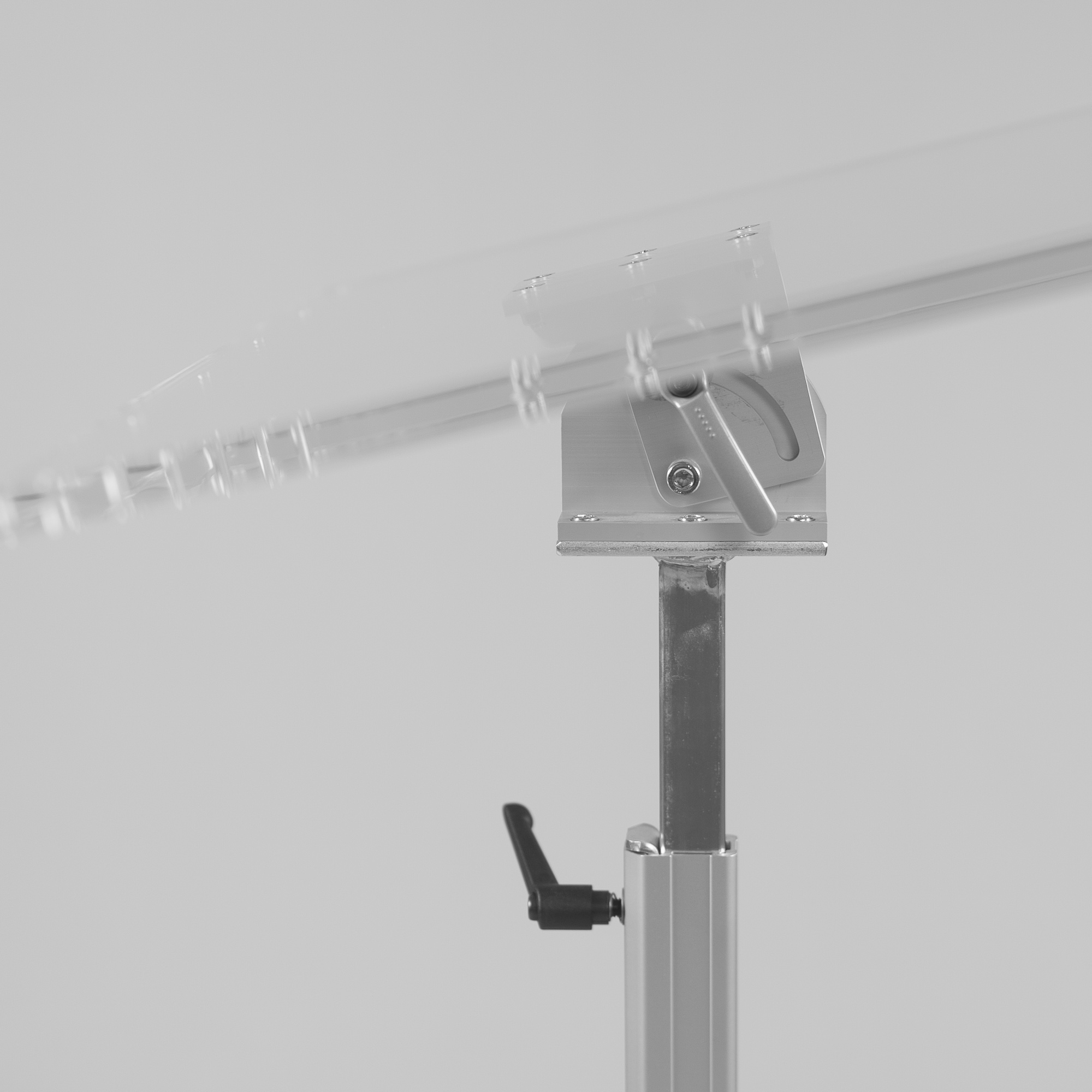 HxBxT: 1,45x0,65x0,50m; Platte Acryl transparent; Gestell Aluminium; neigbar; höhenverstellbar