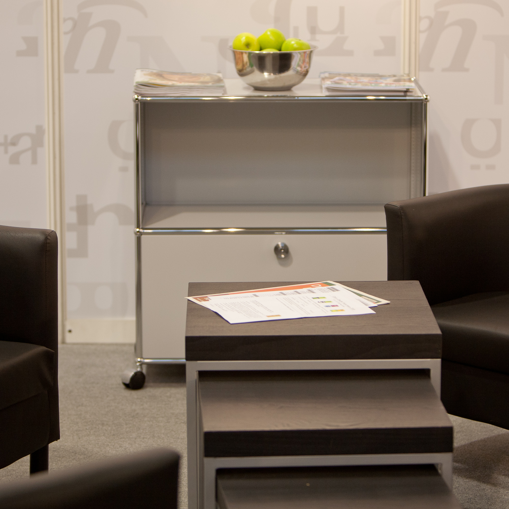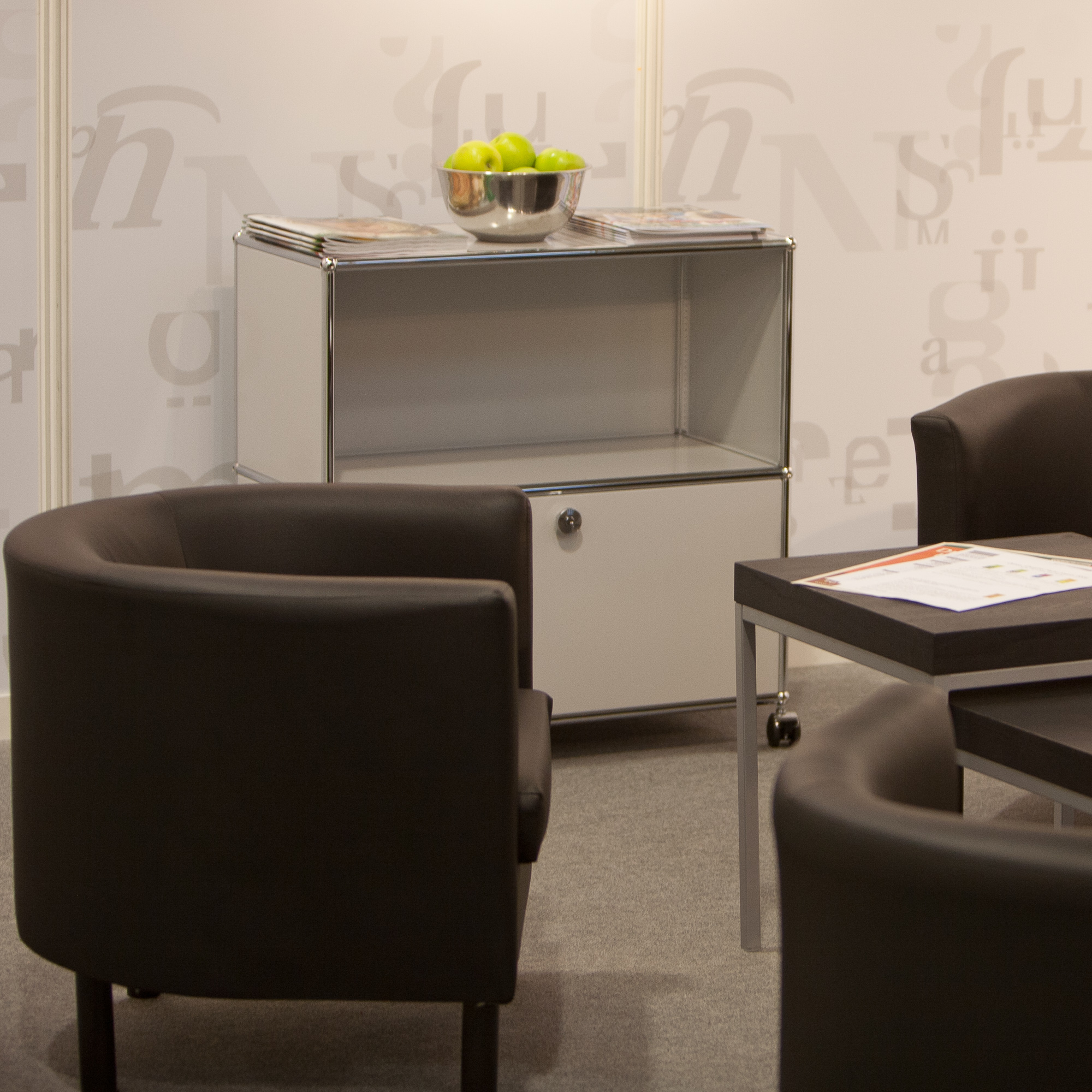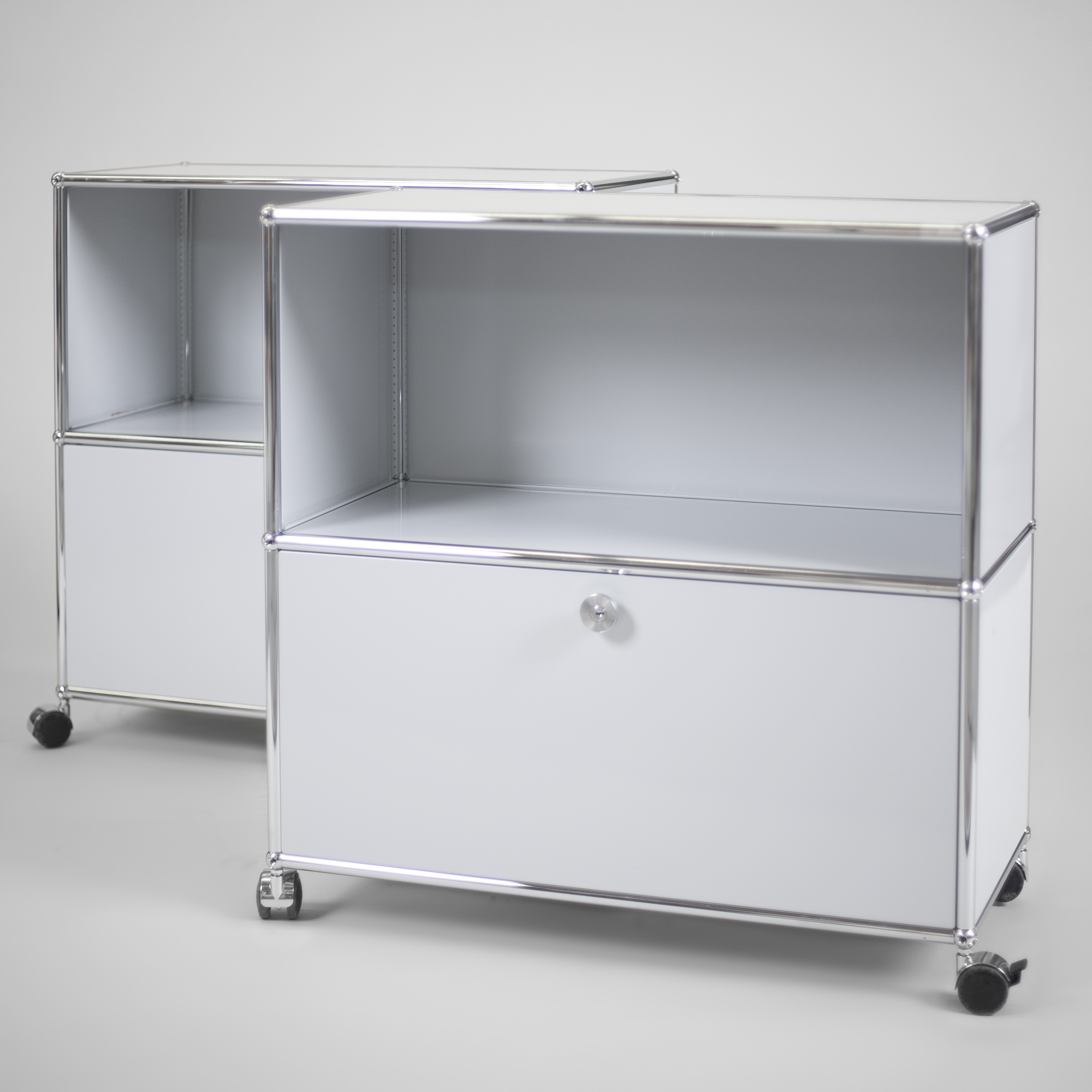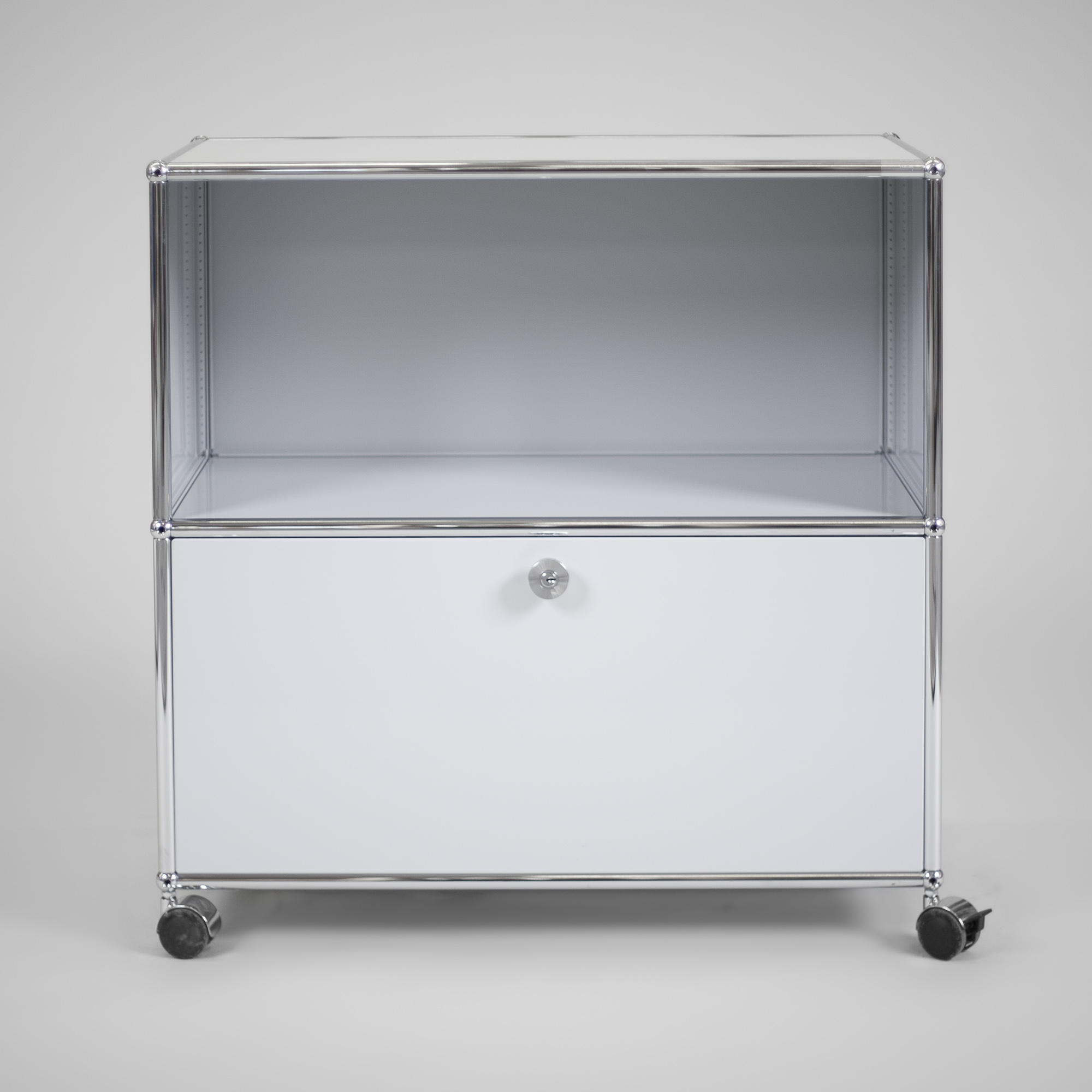 | Beschreibung: | USM-Haller Sideboard mit einem abschließbarem Fach und Rollen |