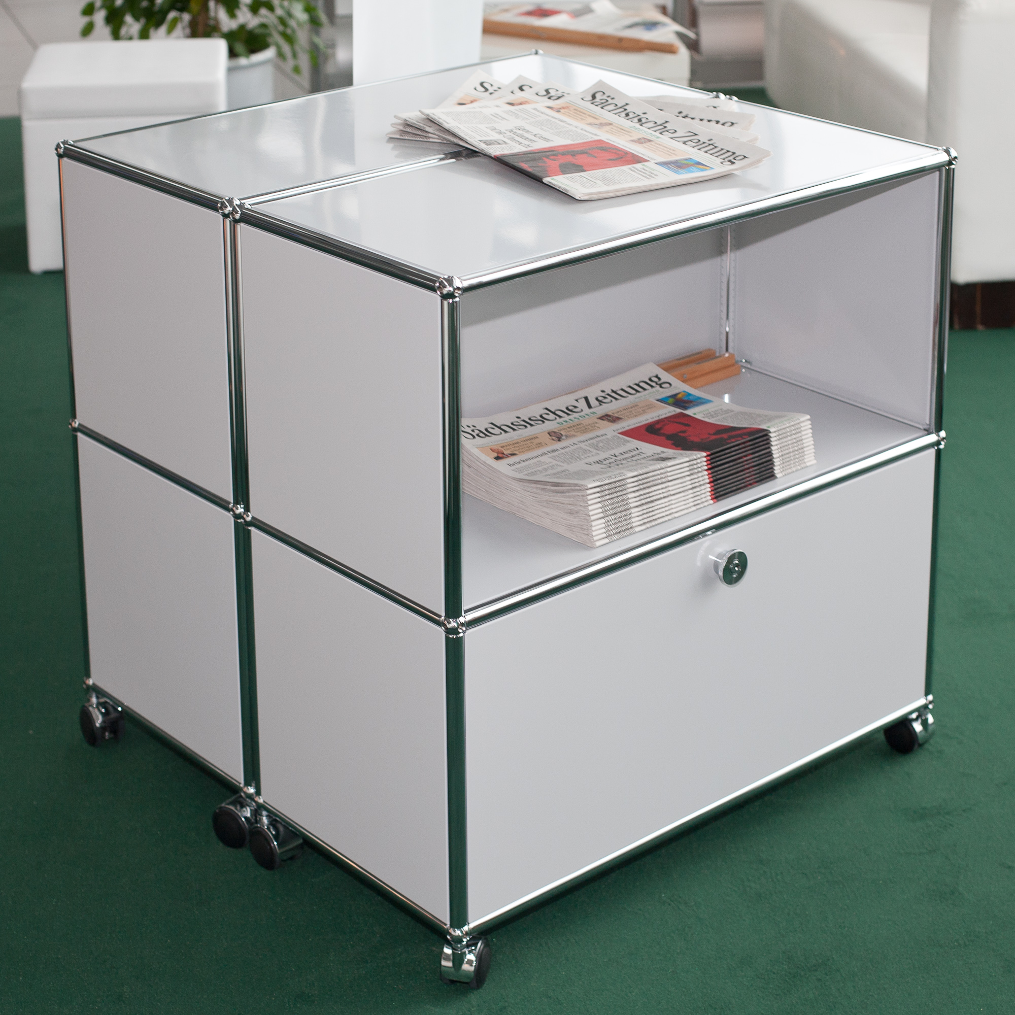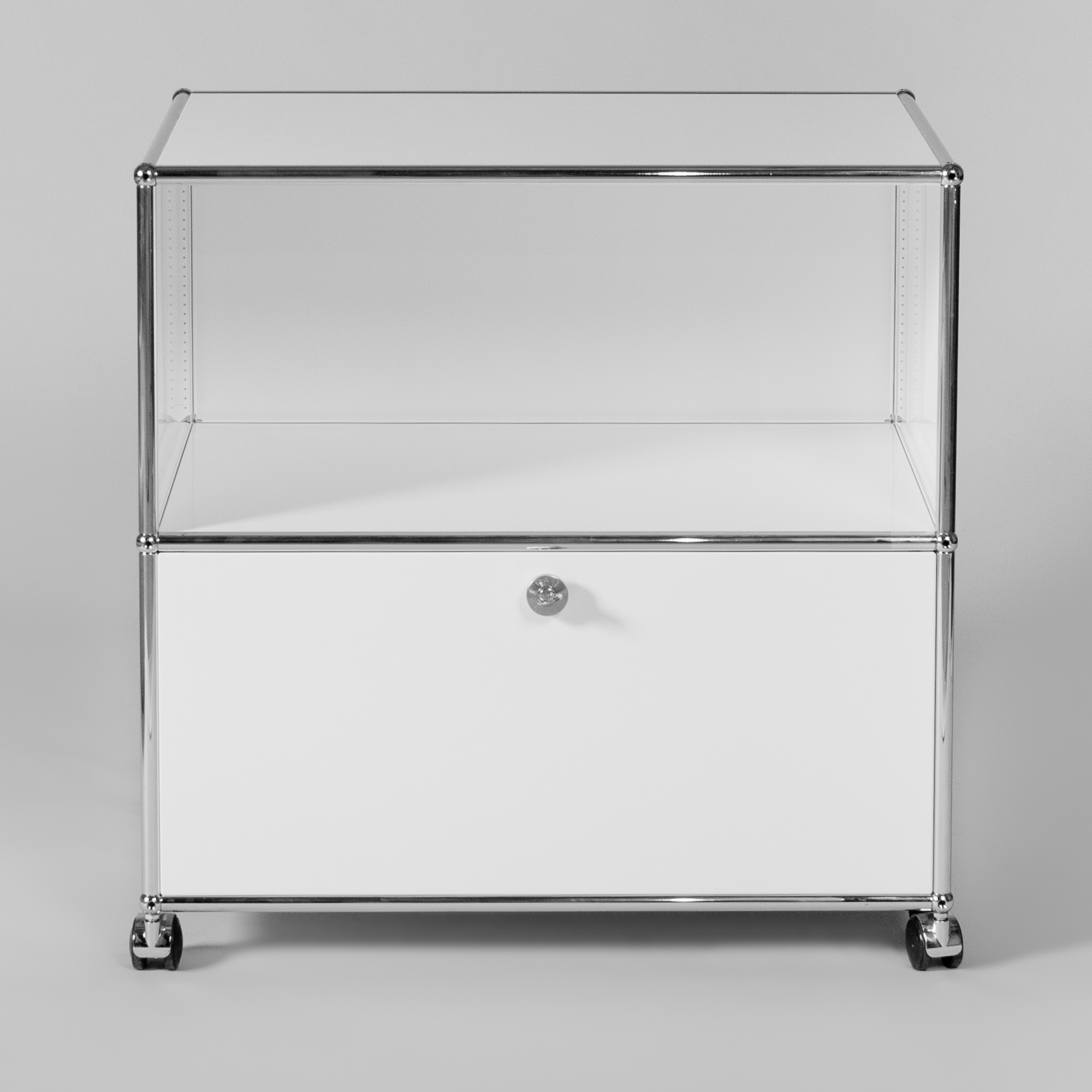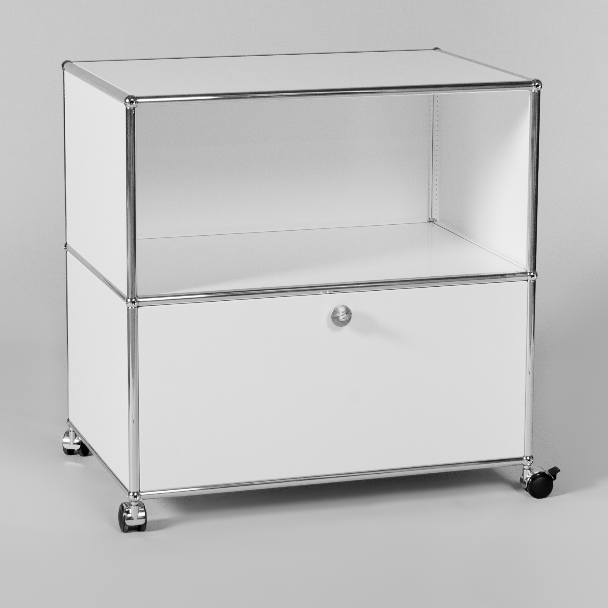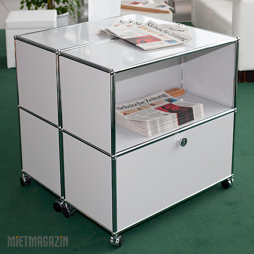 Beschreibung: | USM-Haller Sideboard mit einem abschließbaren Fach und Rollen |