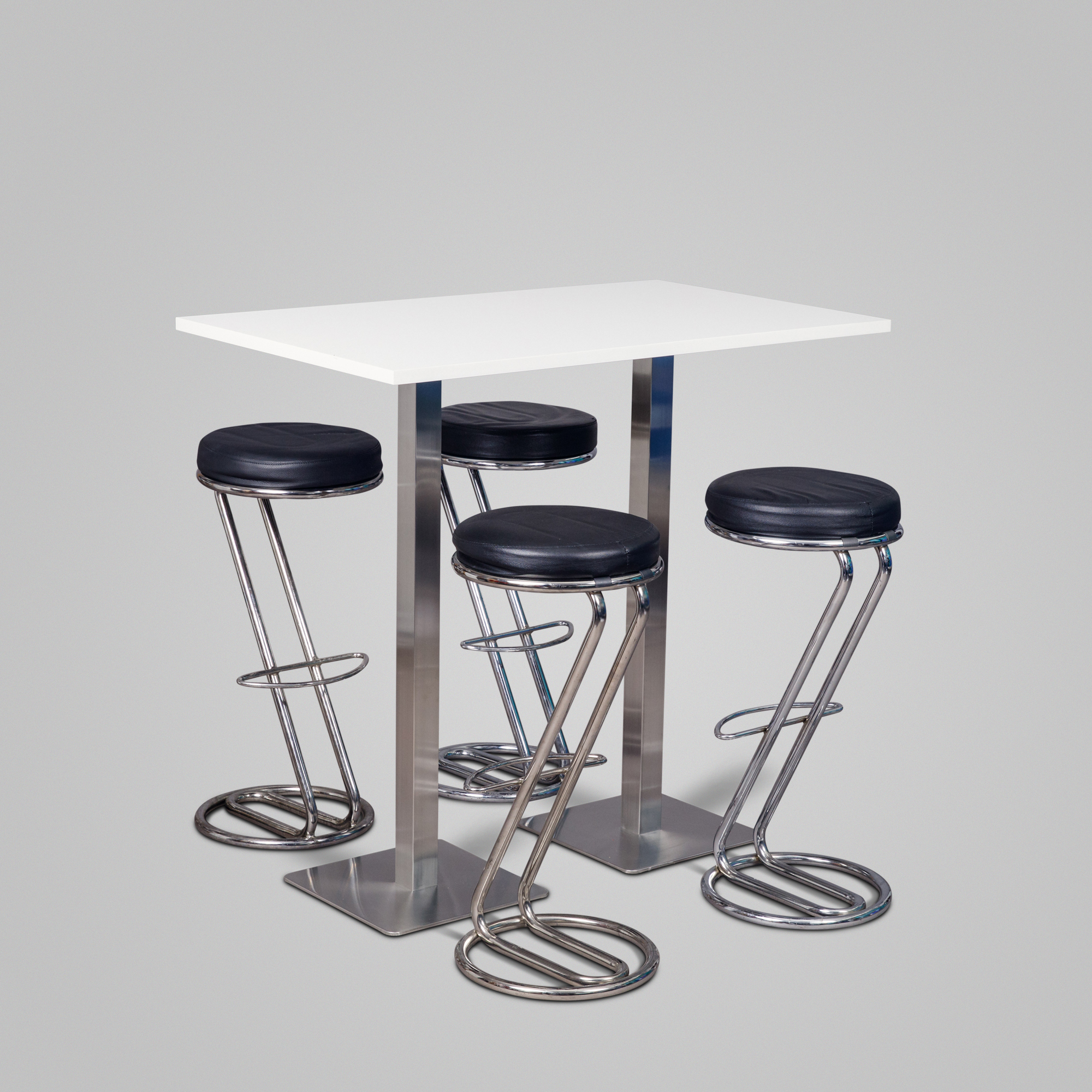 Beschreibung:Mieten Sie unser Stehtischbrückenset "Jazz mini" / "Zeta schwarz" für 4 Personen bestehend aus 1 Stehtischbrücke "Jazz mini" 1,2mx0,7m & 4 Barhocker "Zeta schwarz"