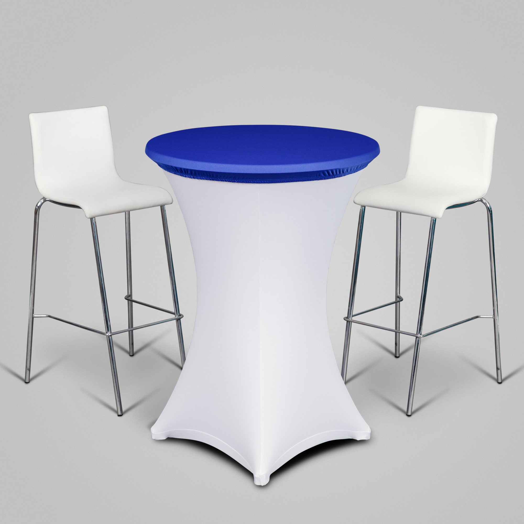 Beschreibung:Mieten Sie unser Stehtischset "Basic" / "Aspen" für 4 Personen bestehend aus 1 Stehtisch "Basic" dm 0,8m, 1 Stehtischhusse Stretch (Farbe nach Wahl) & 4 Barhocker "Aspen"