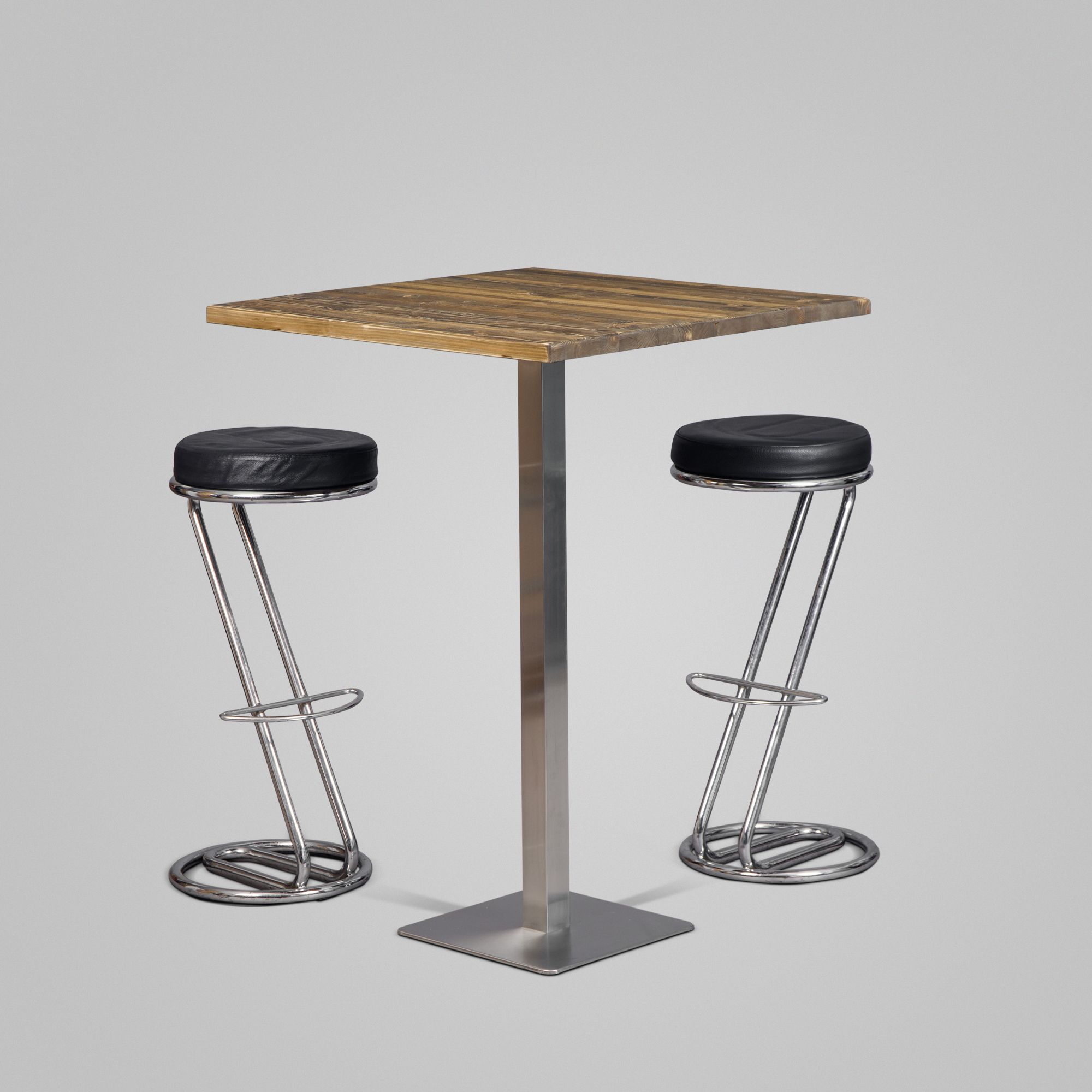 Beschreibung:Mieten Sie unser Stehtischset "Country Jazz" / "Zeta schwarz" für 4 Personen bestehend aus 1 Stehtisch "Country Jazz" 0,8mx0,8m & 4 Barhocker "Zeta schwarz"