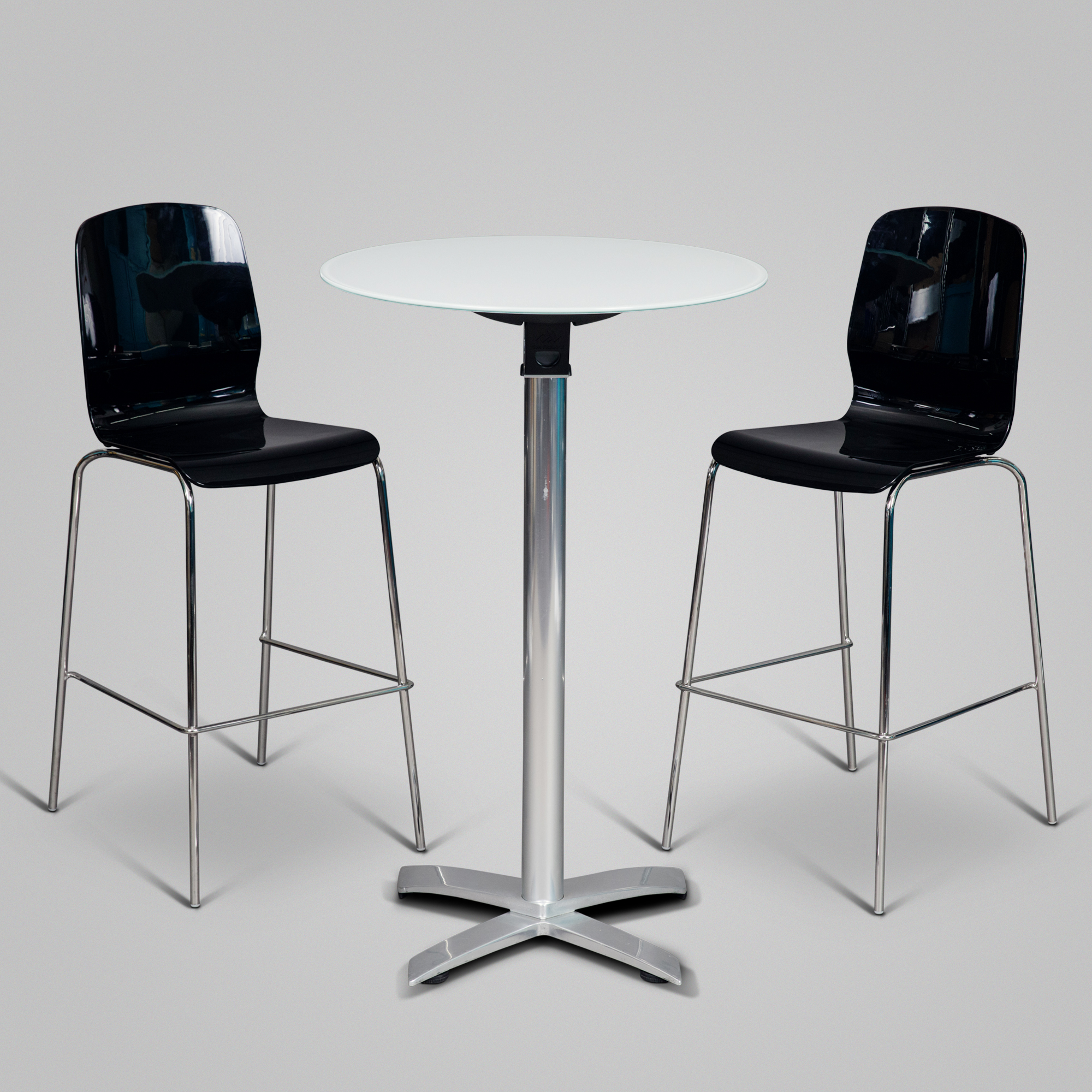 Beschreibung:Mieten Sie unser Stehtischset "Saphir" / "Glamour schwarz" für 4 Personen bestehend aus 1 Stehtisch "Saphir" dm 0,7m, 4 Barhocker "Glamour schwarz"