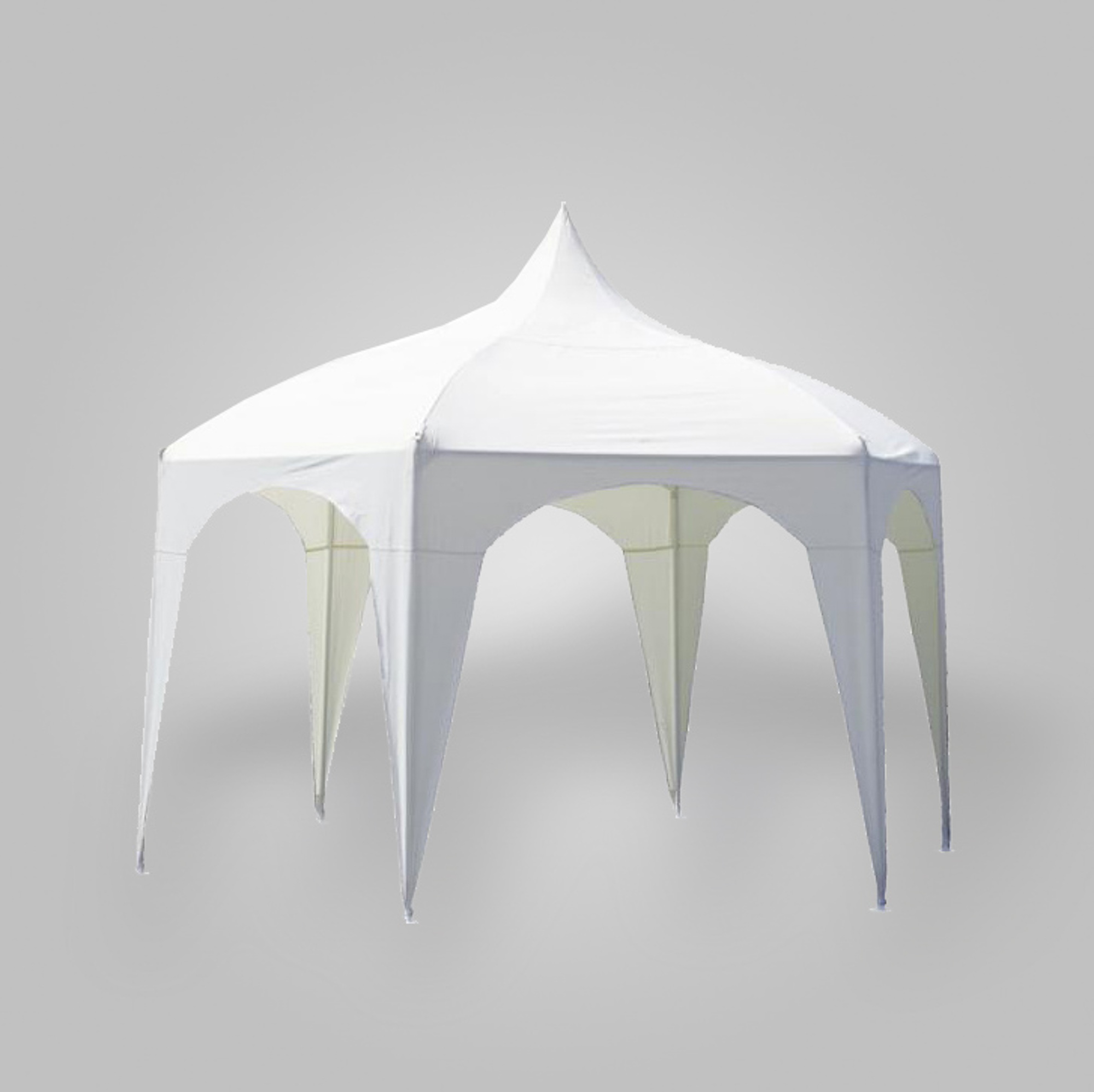 Beschreibung:6-eckiger Pavillon mit Stecksystem, Gesamthöhe 3,60m, Seitenhöhe 2,10m
