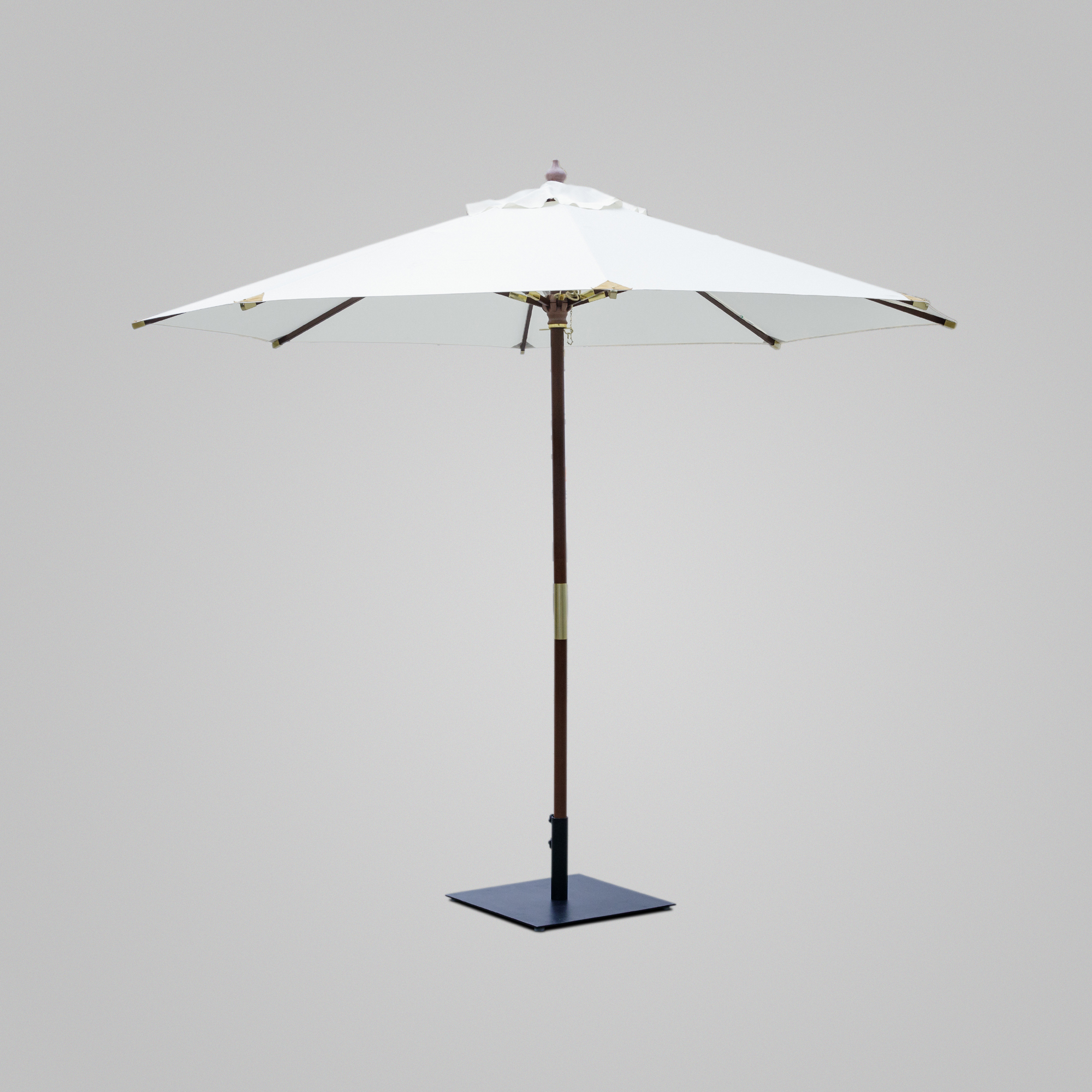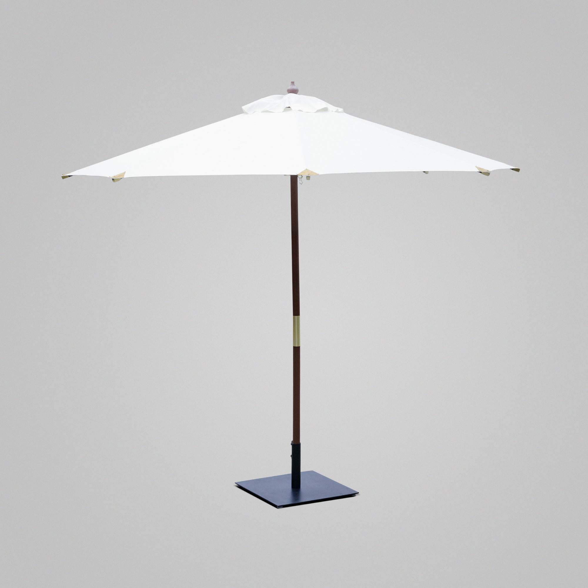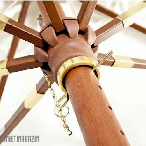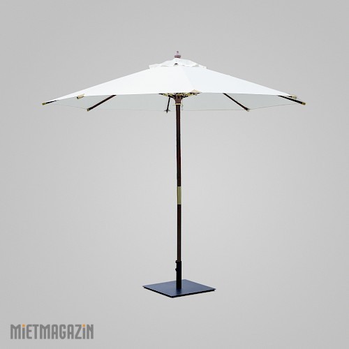 HxBxT: 2,60x3,00x3,00m; Bezug Fb. weiß; Gestell Holz; inkl. Schirmständer