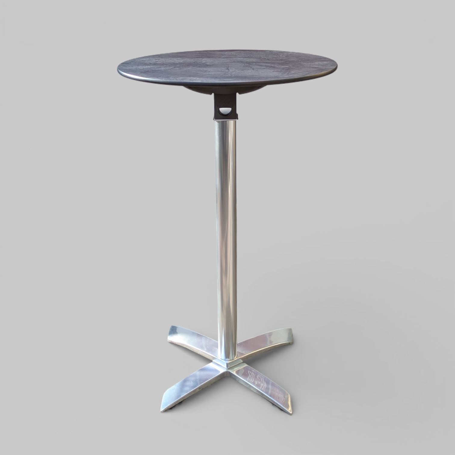HxØ: 1,13x0,68m; Platte HPL schwarz gemustert; Fuß Aluminium