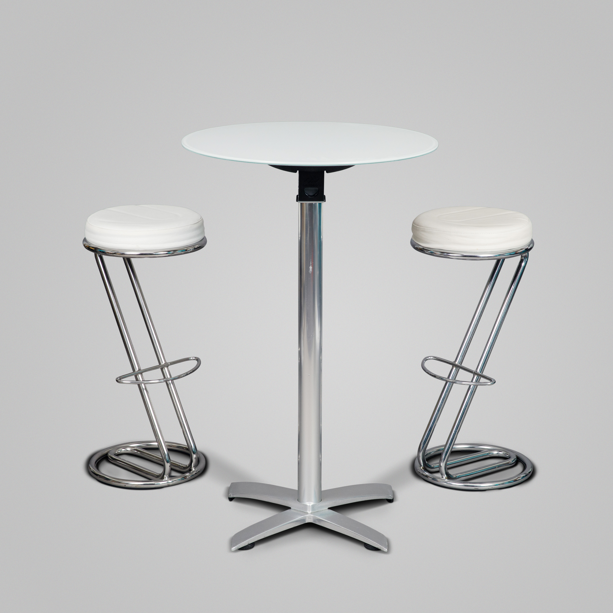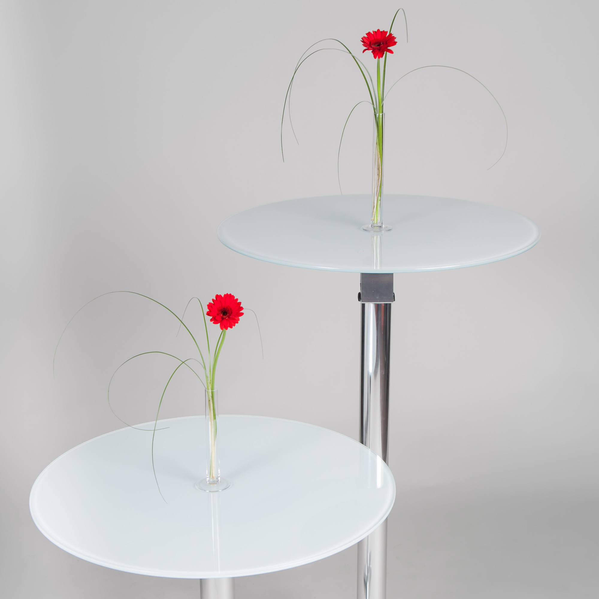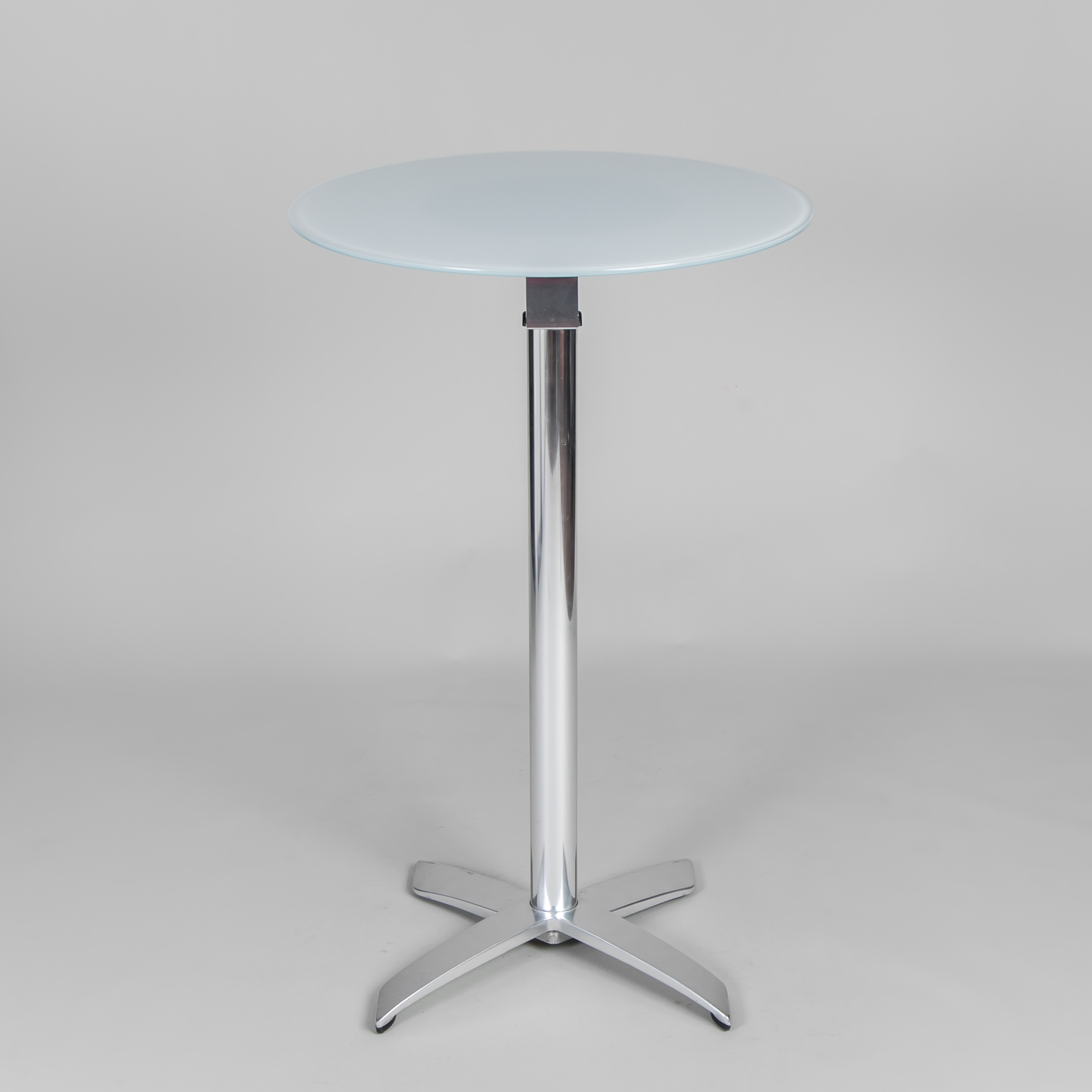 HxØ: 1,15x0,70m; Platte Glas weiß; Fuß Aluminium