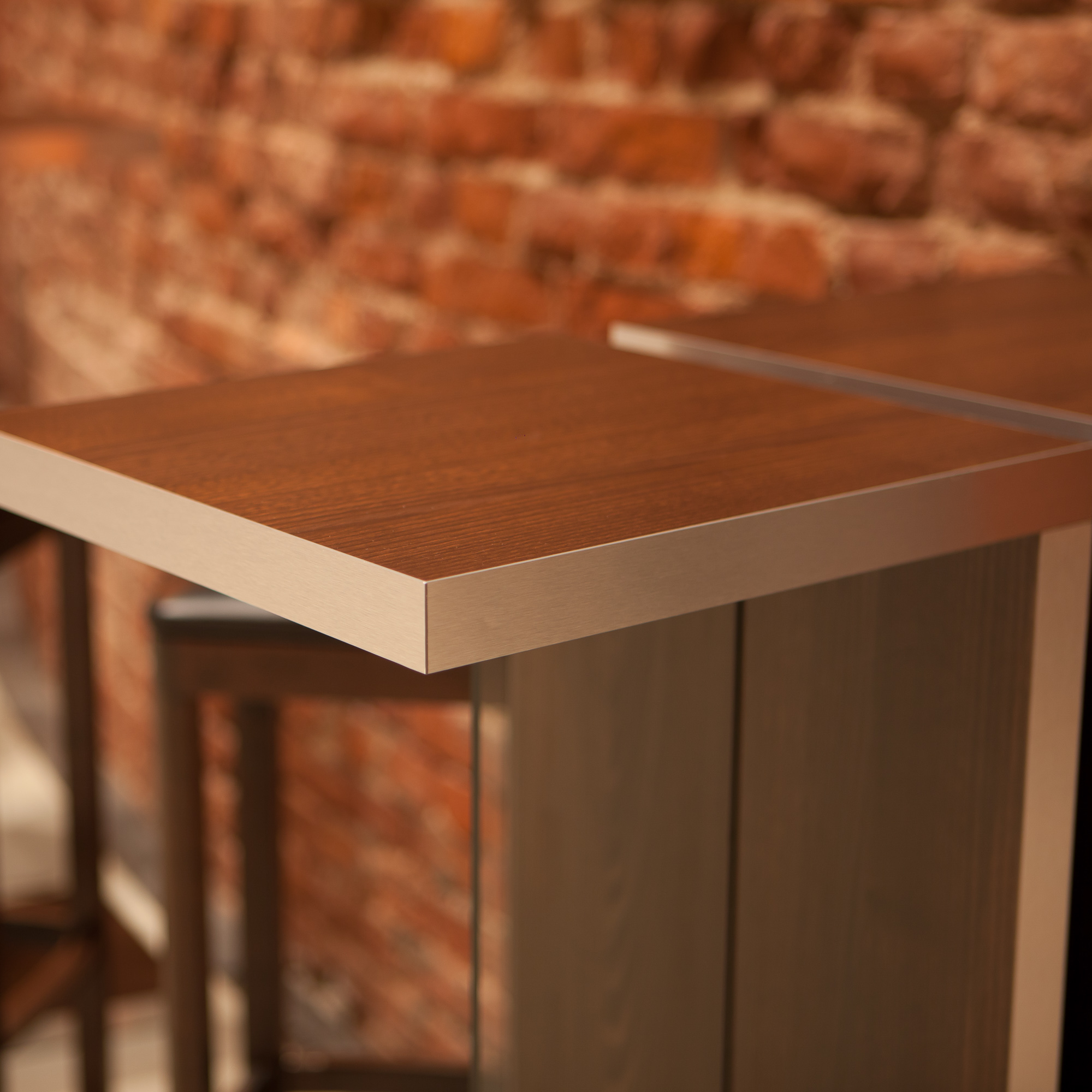 Farbe:Korpus Holzdekor dunkelbraun, Kante Edelstahl gebürstet