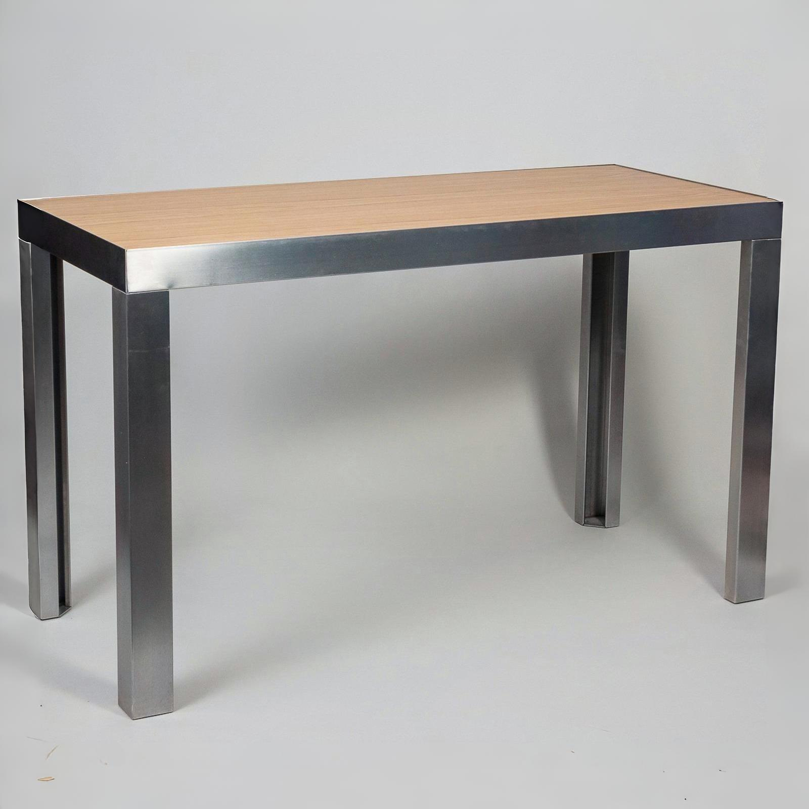 Beschreibung:Platte in Holzoptik hell mit 4 Edelstahlfüßen