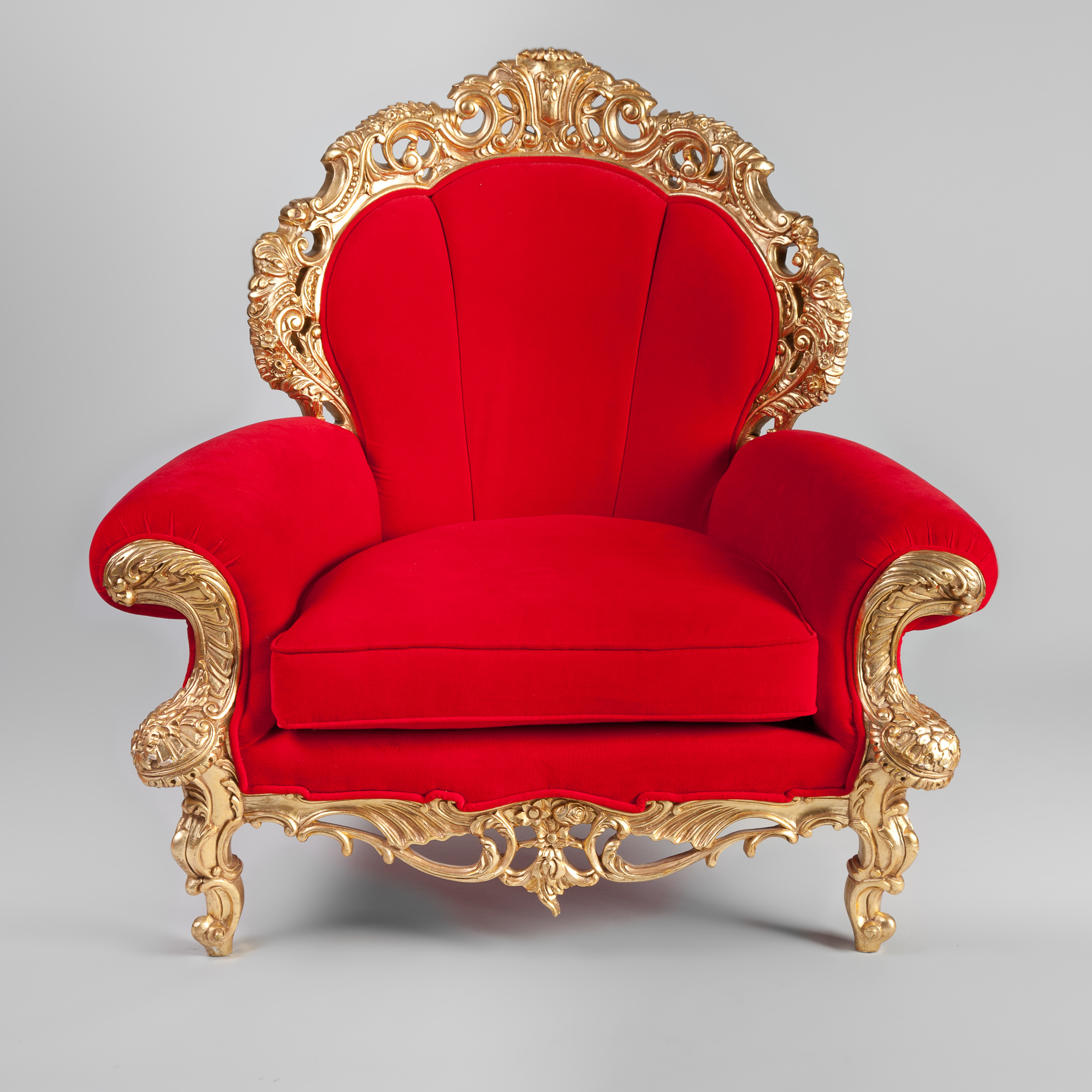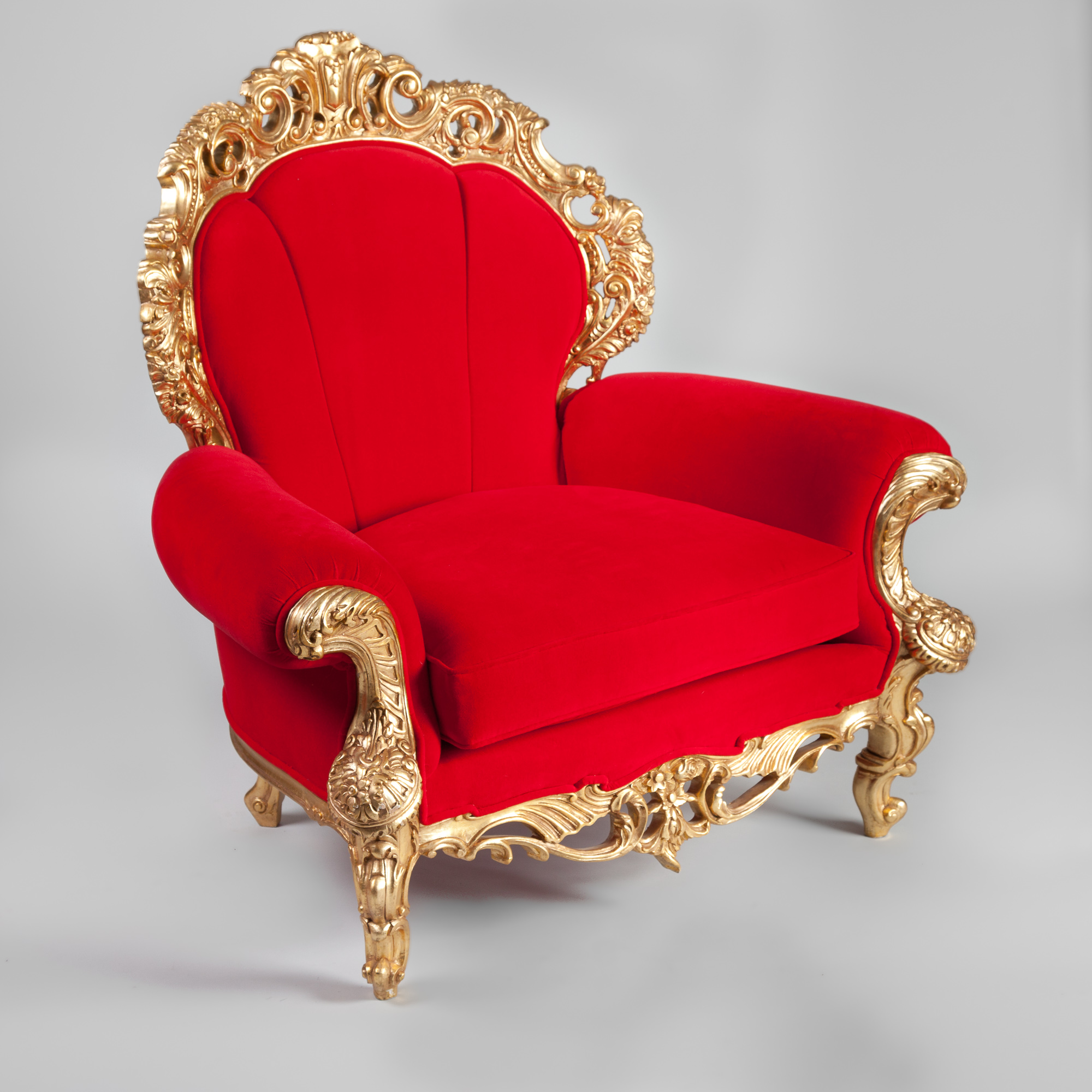 SHxBxT: 0,50x1,15x0,90m; Bezug Samt rot; Korpus gold