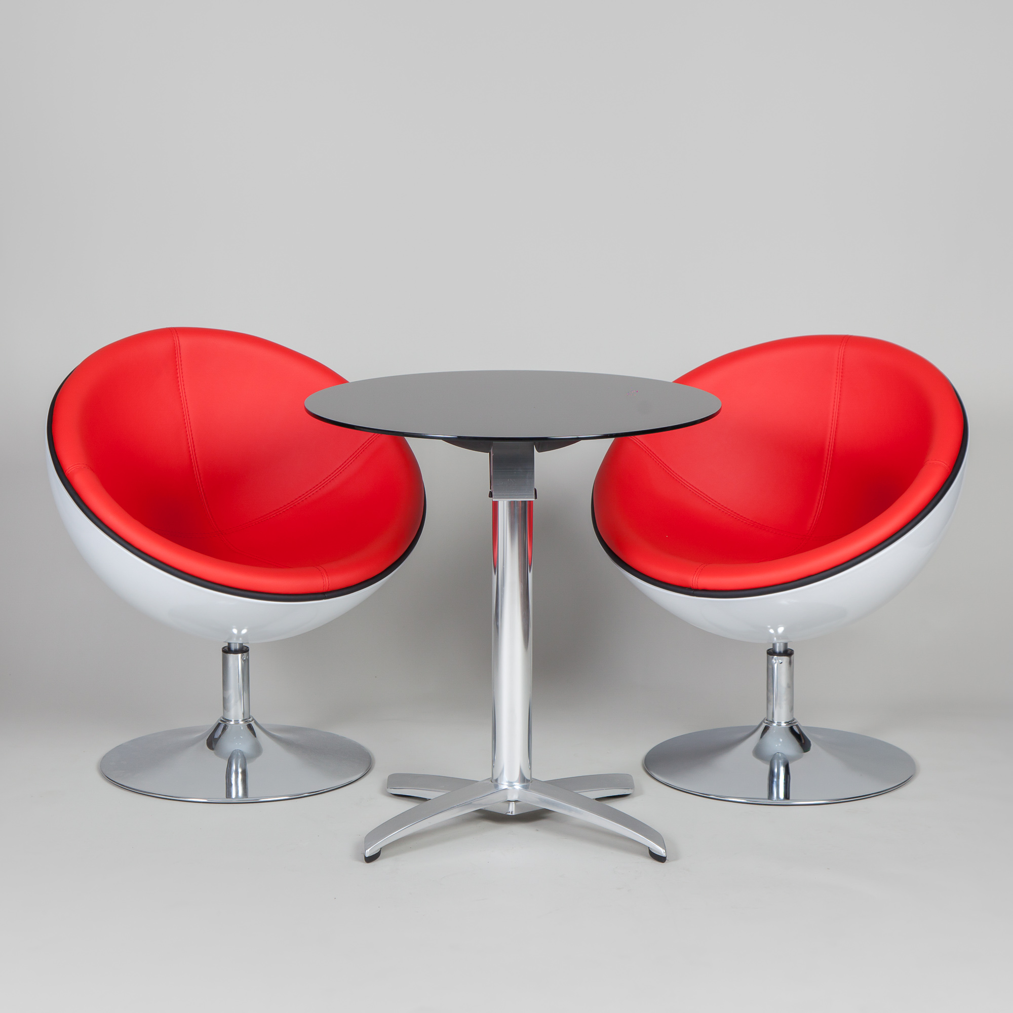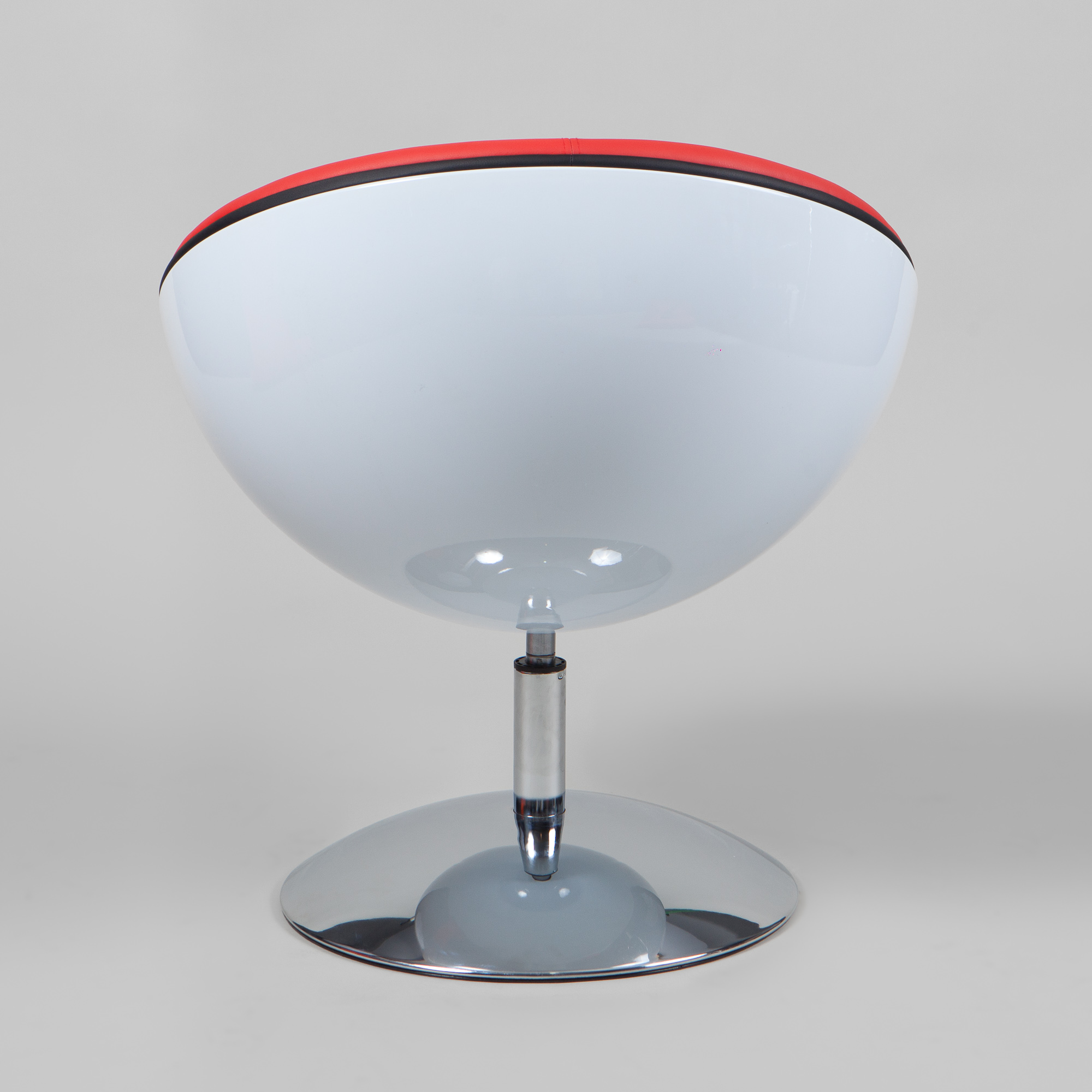 SHxØ: 0,42x0,80m; Bezug rot; Korpus weiß; Fuß verchromt, drehbar