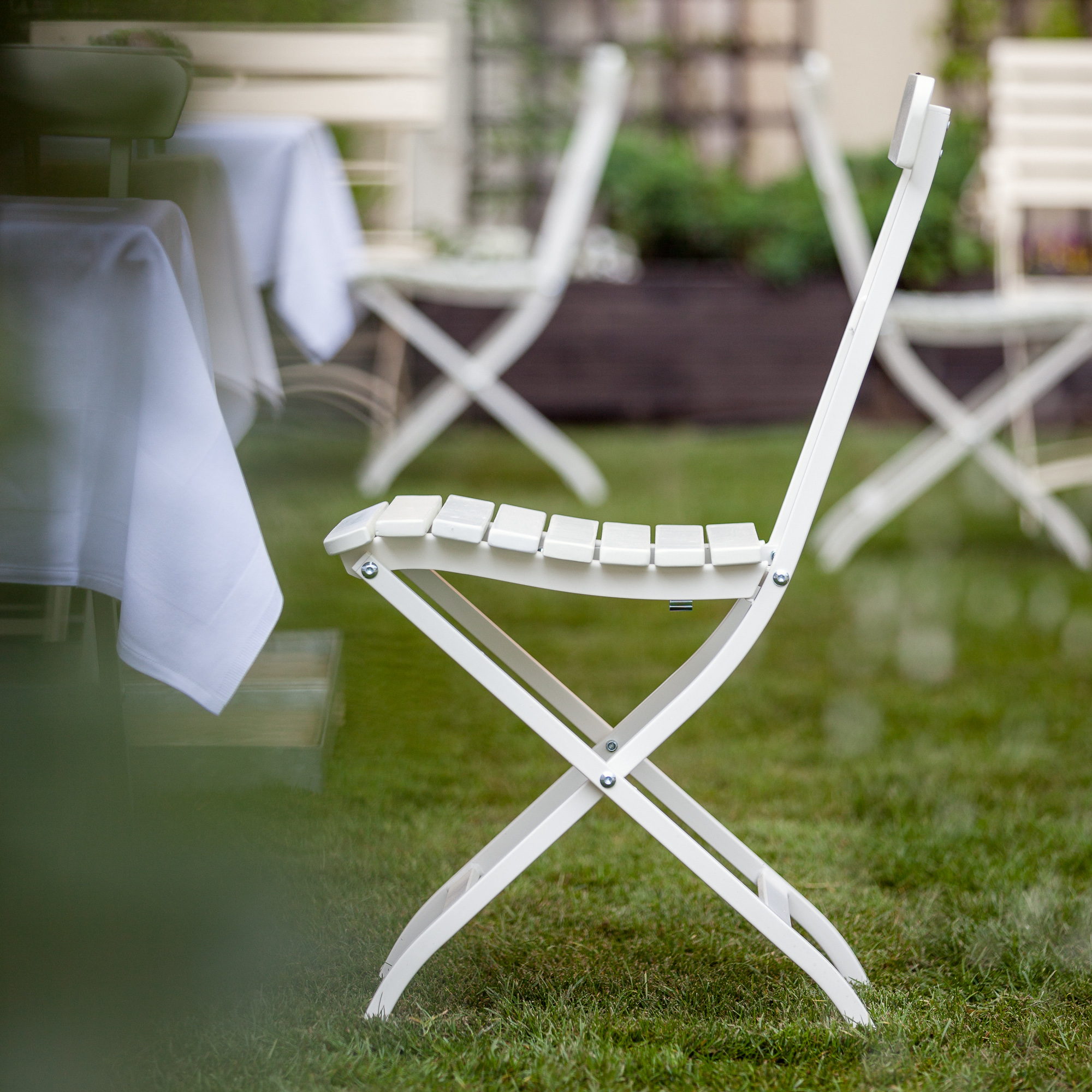 SHxB: 0,45x0,40m; Sitz u. Rückenlehne weiß; Gestell weiß, klappbar