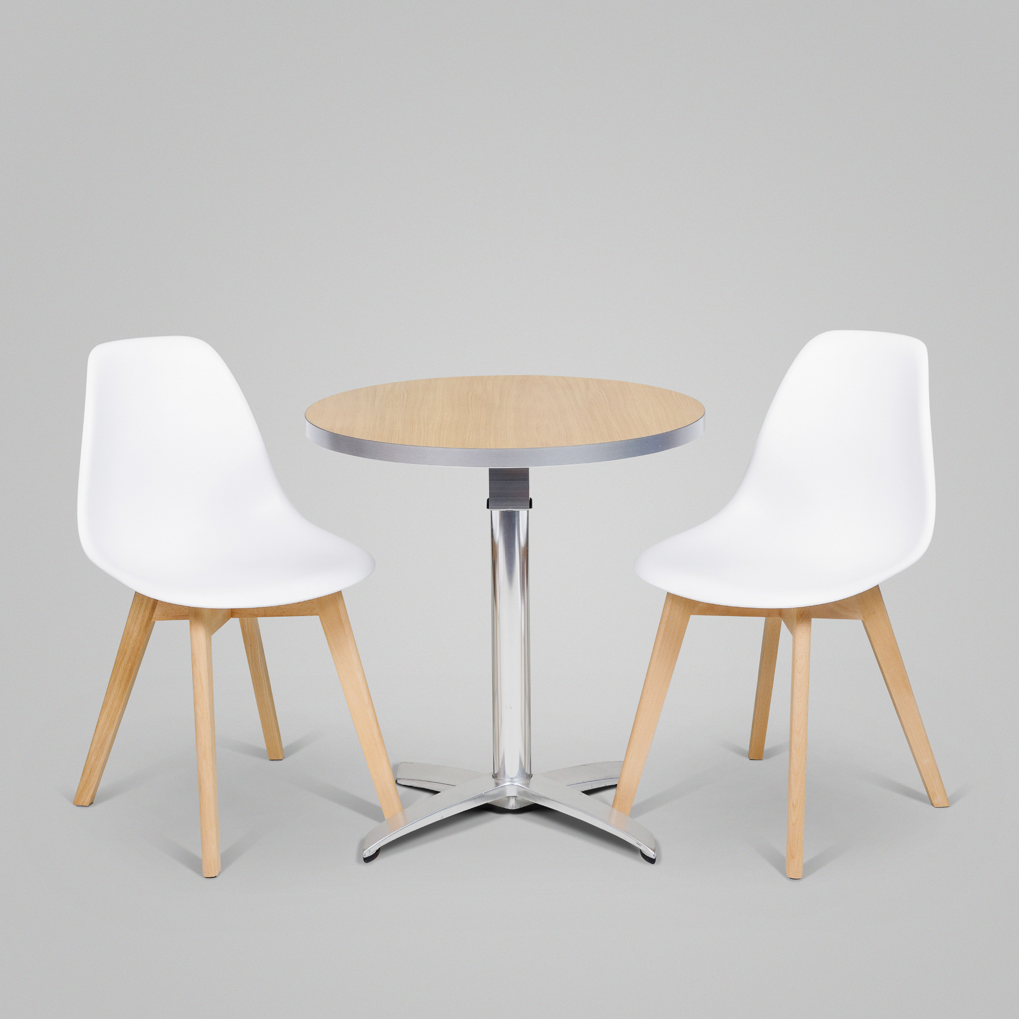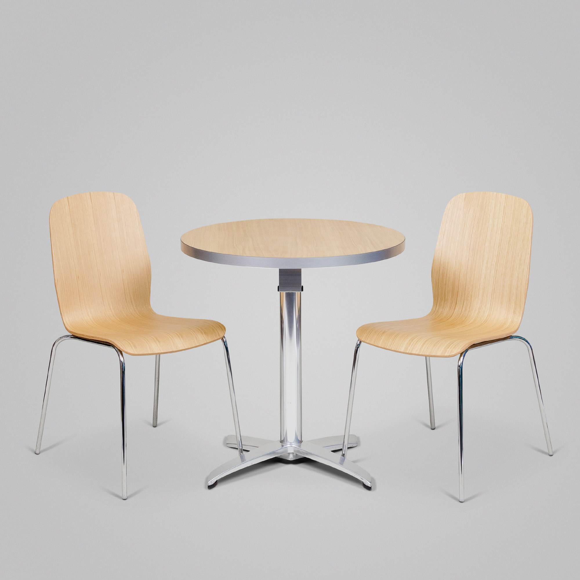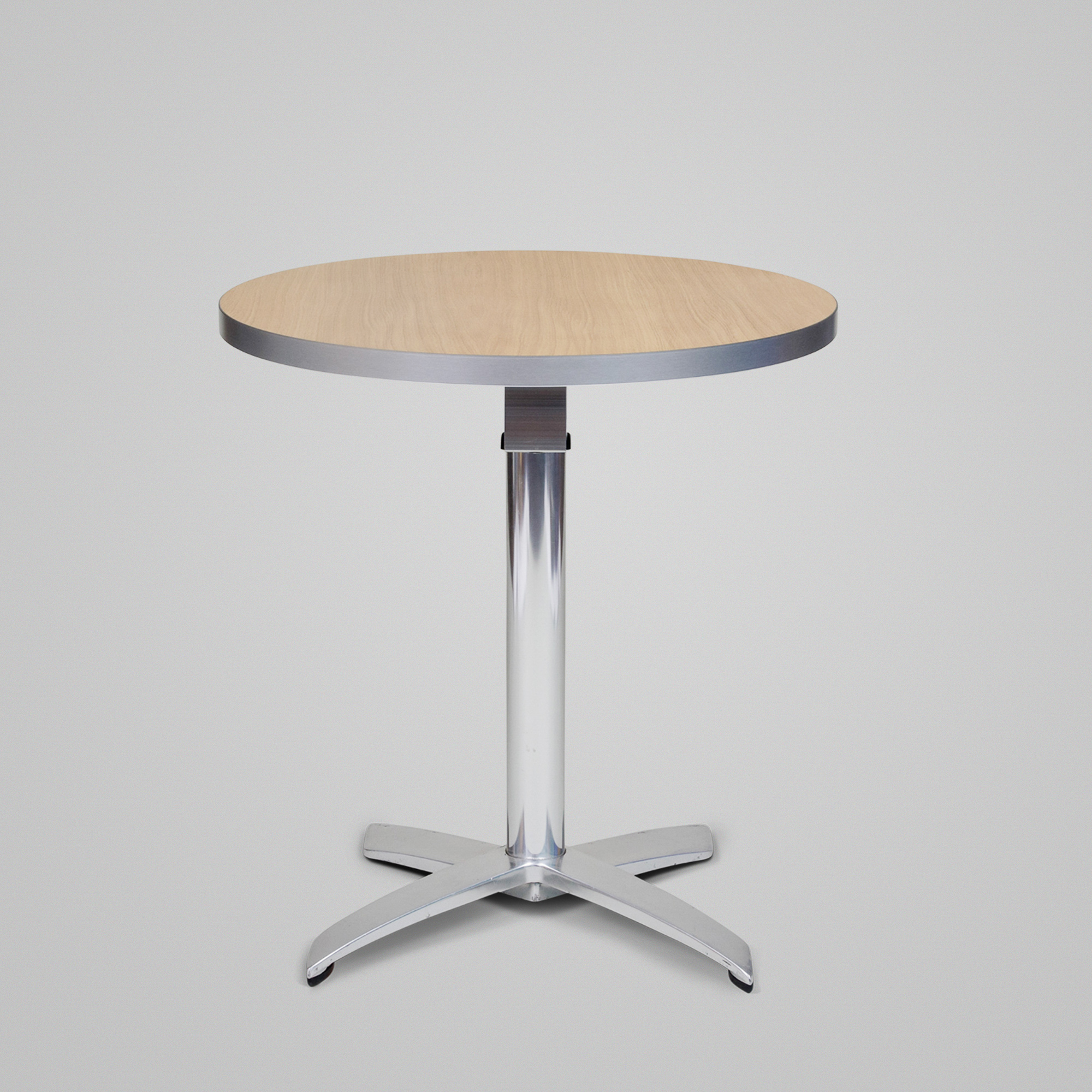 HxØ: 0,73x0,70m; Platte Holzoptik hell; Kante silber; Fuß Aluminium