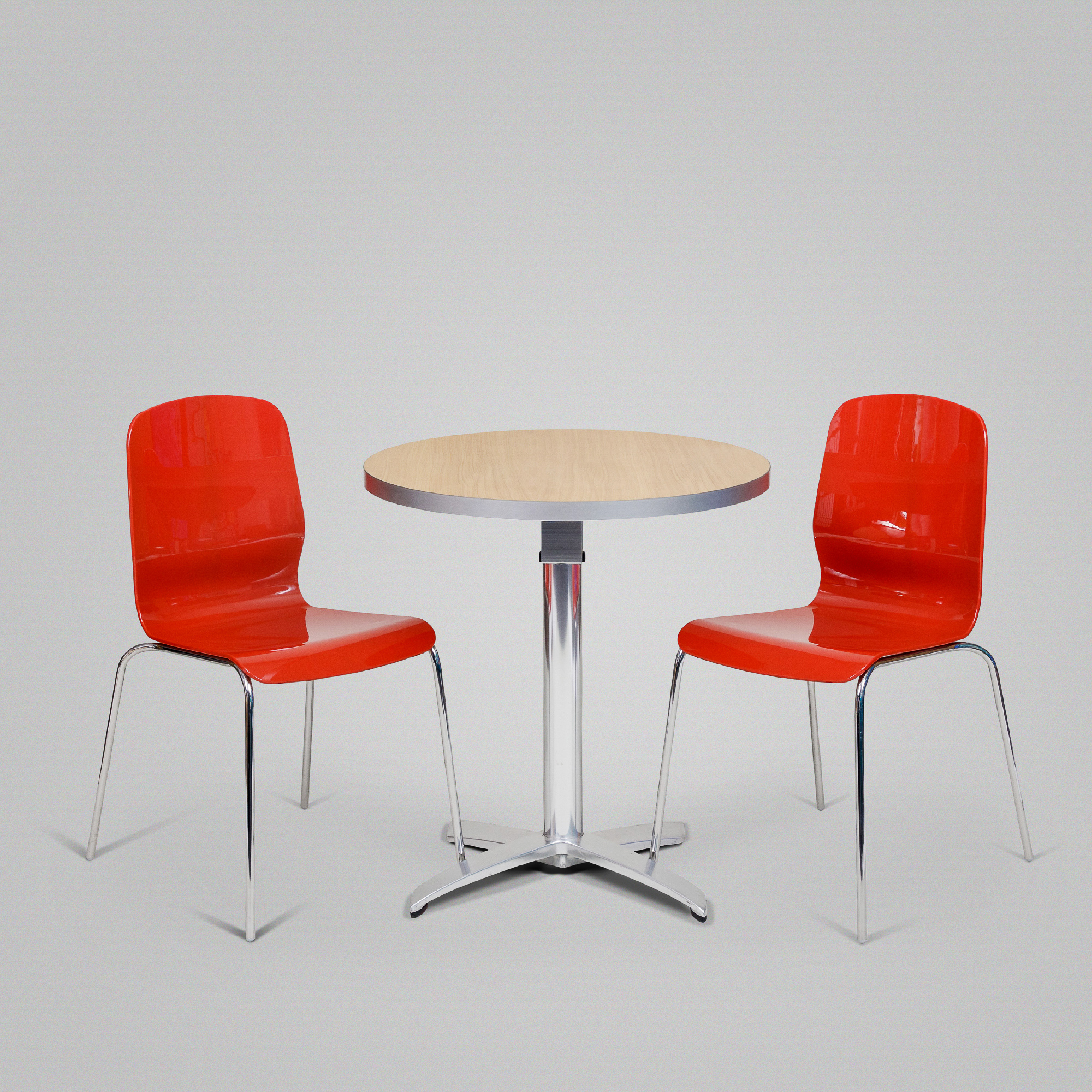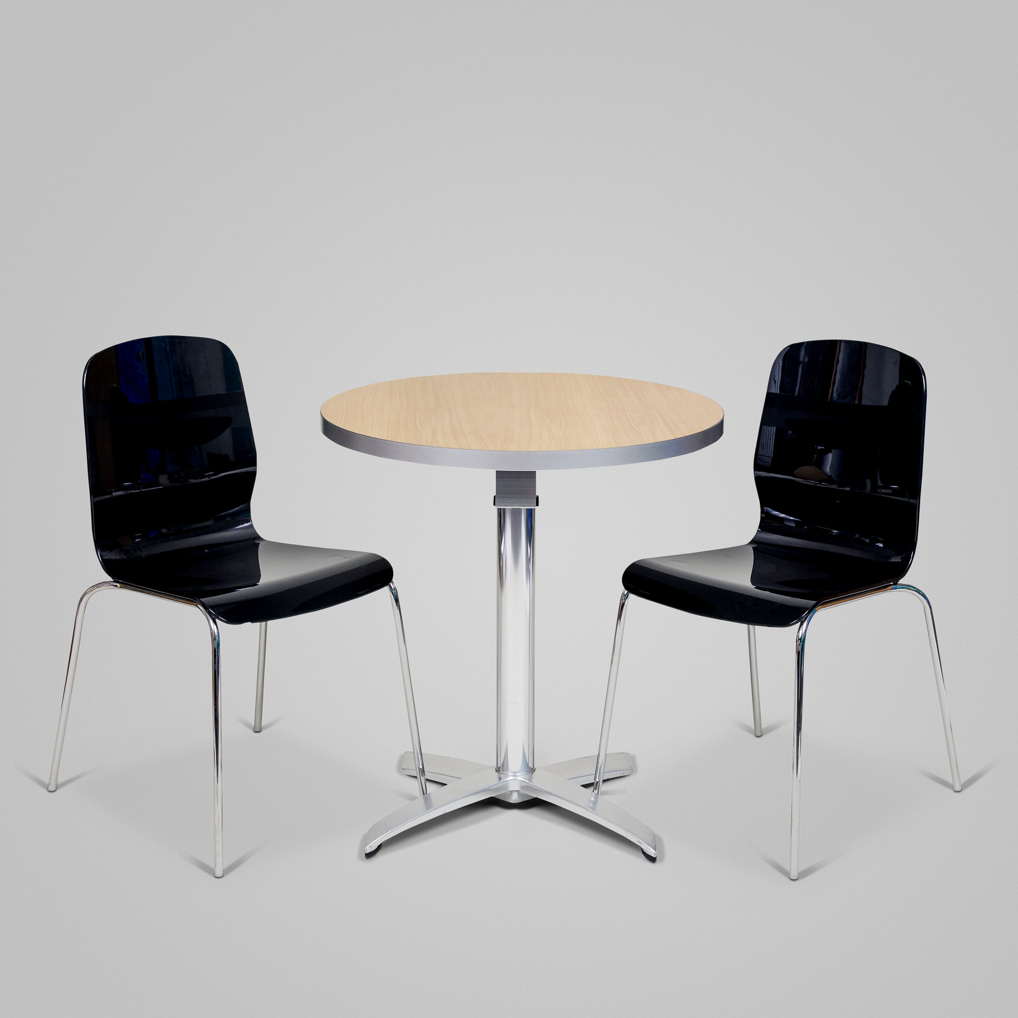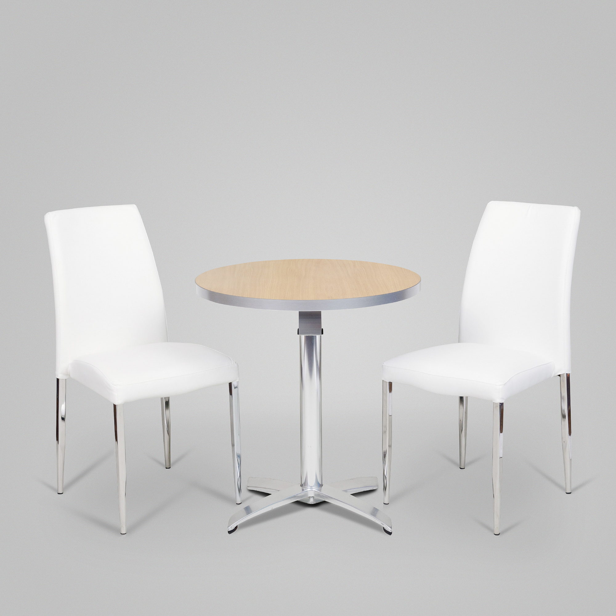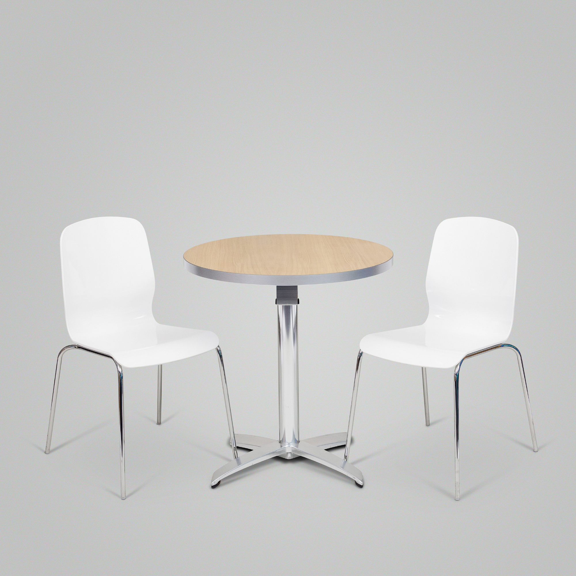 HxØ: 0,73x0,70m; Platte Holzoptik hell; Kante silber; Fuß Aluminium