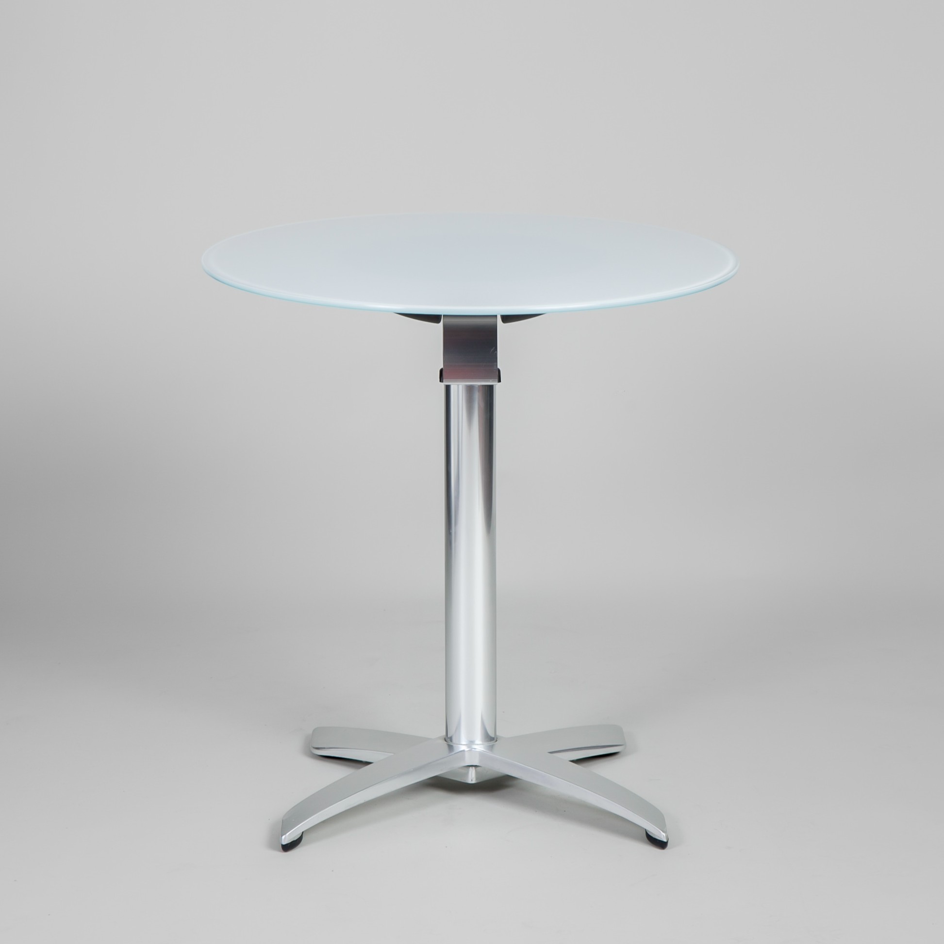 HxØ: 0,73x0,70m; Platte Glas weiß; Fuß Aluminium