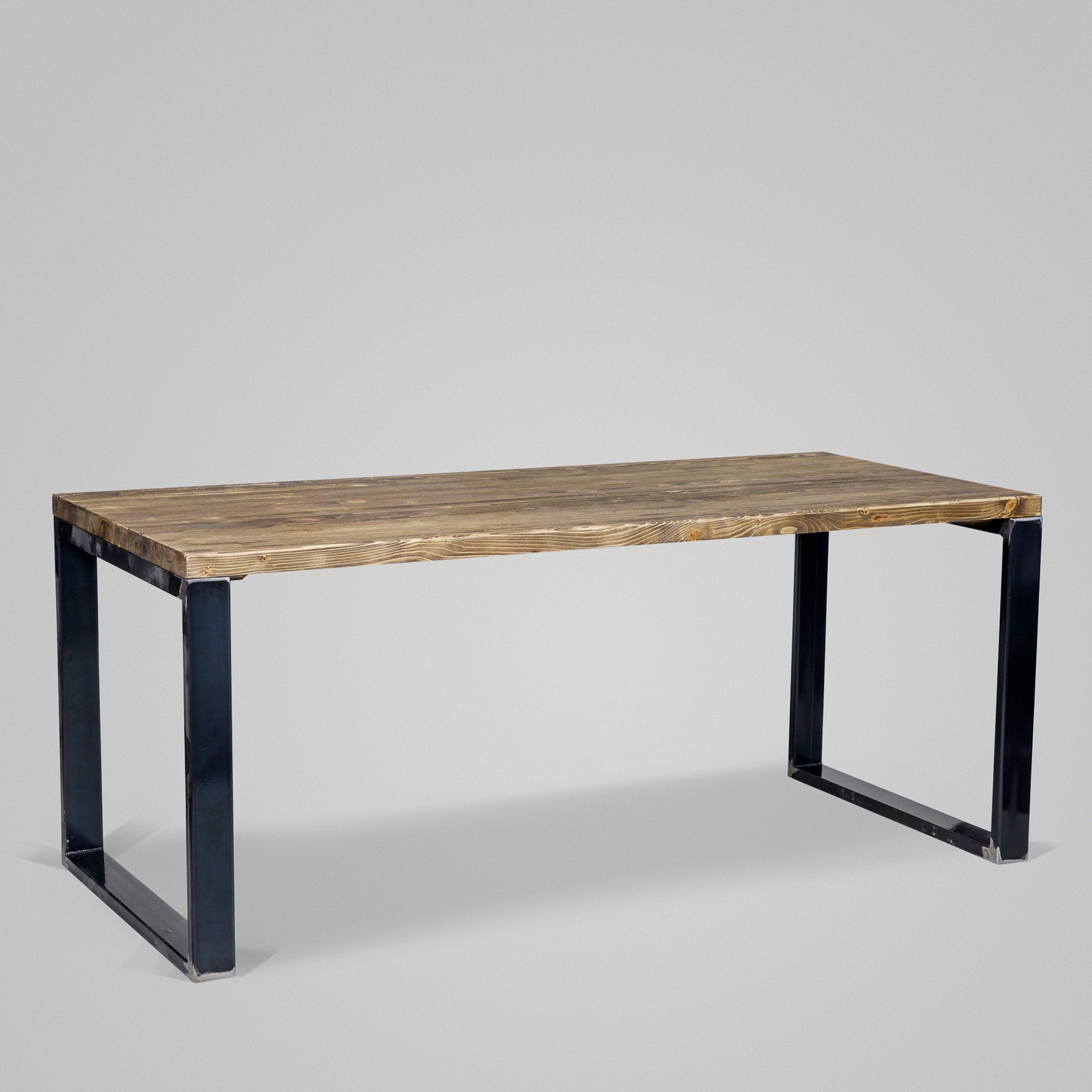 Beschreibung:rustikale Echtholzplatte mit modernen Kufen-Stahlgestell