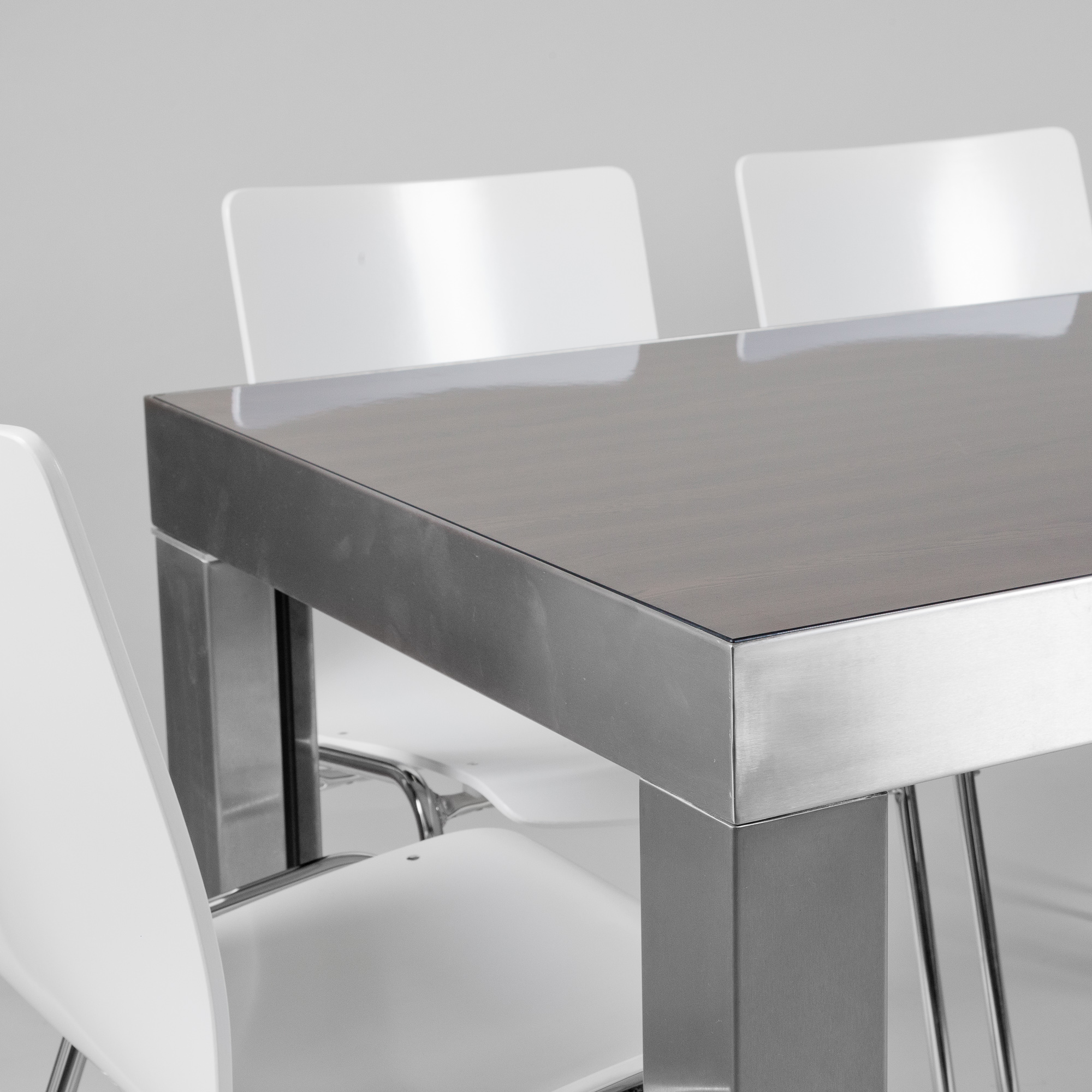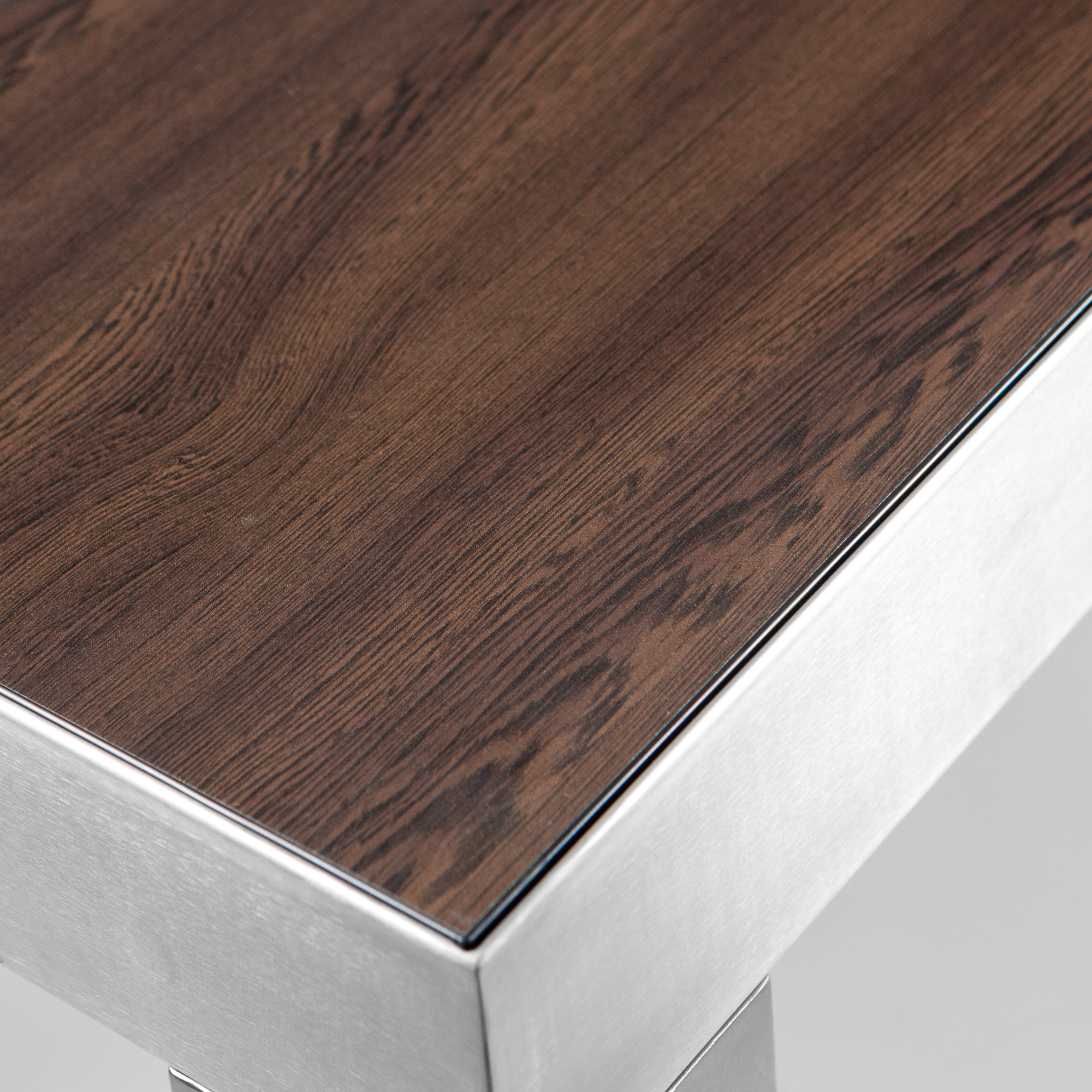 Farbe: | Tischplatte Holzoptik braun, Gestell Edelstahl matt |