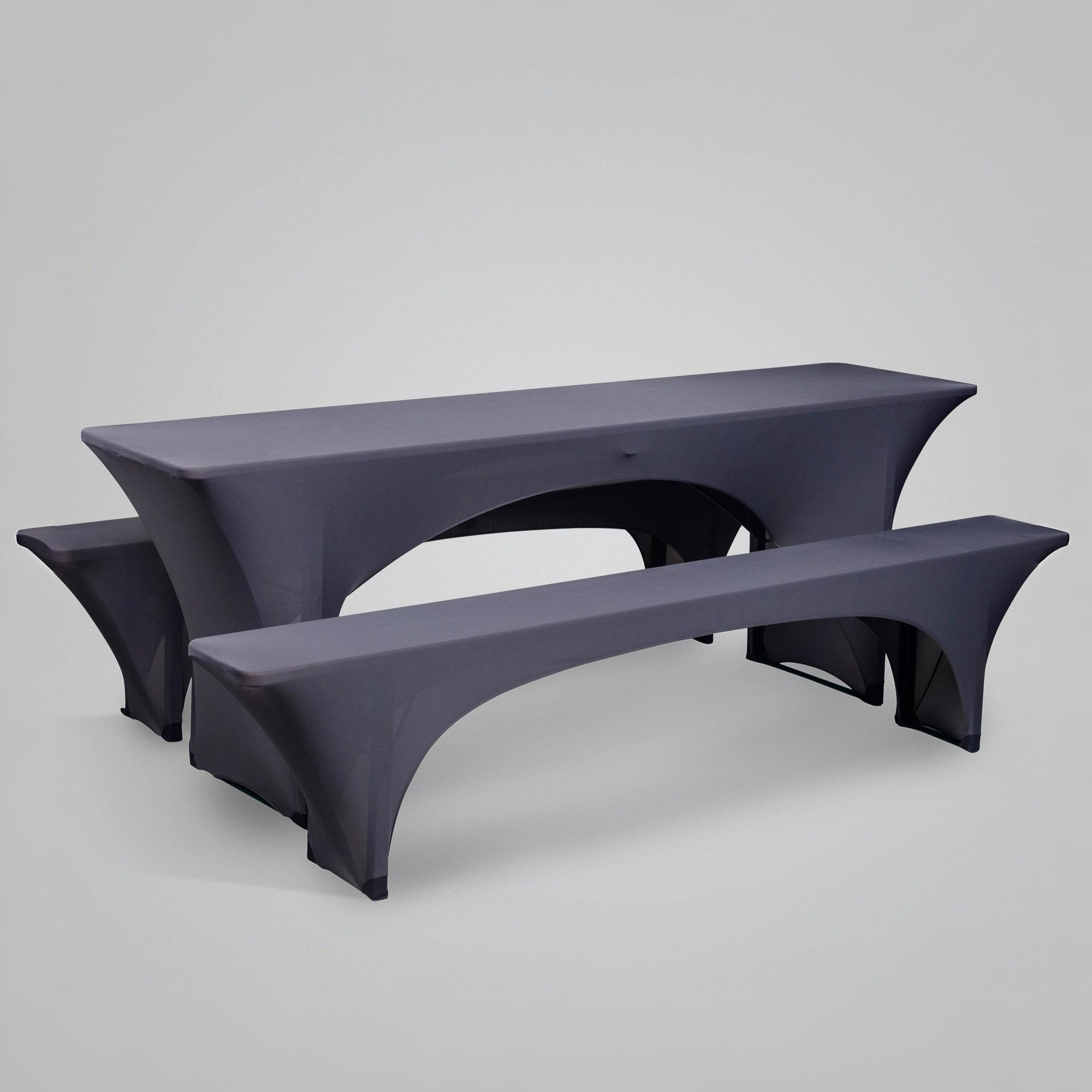 1 Tisch- u. 2 Bankhussen; Polystretch dunkelgrau