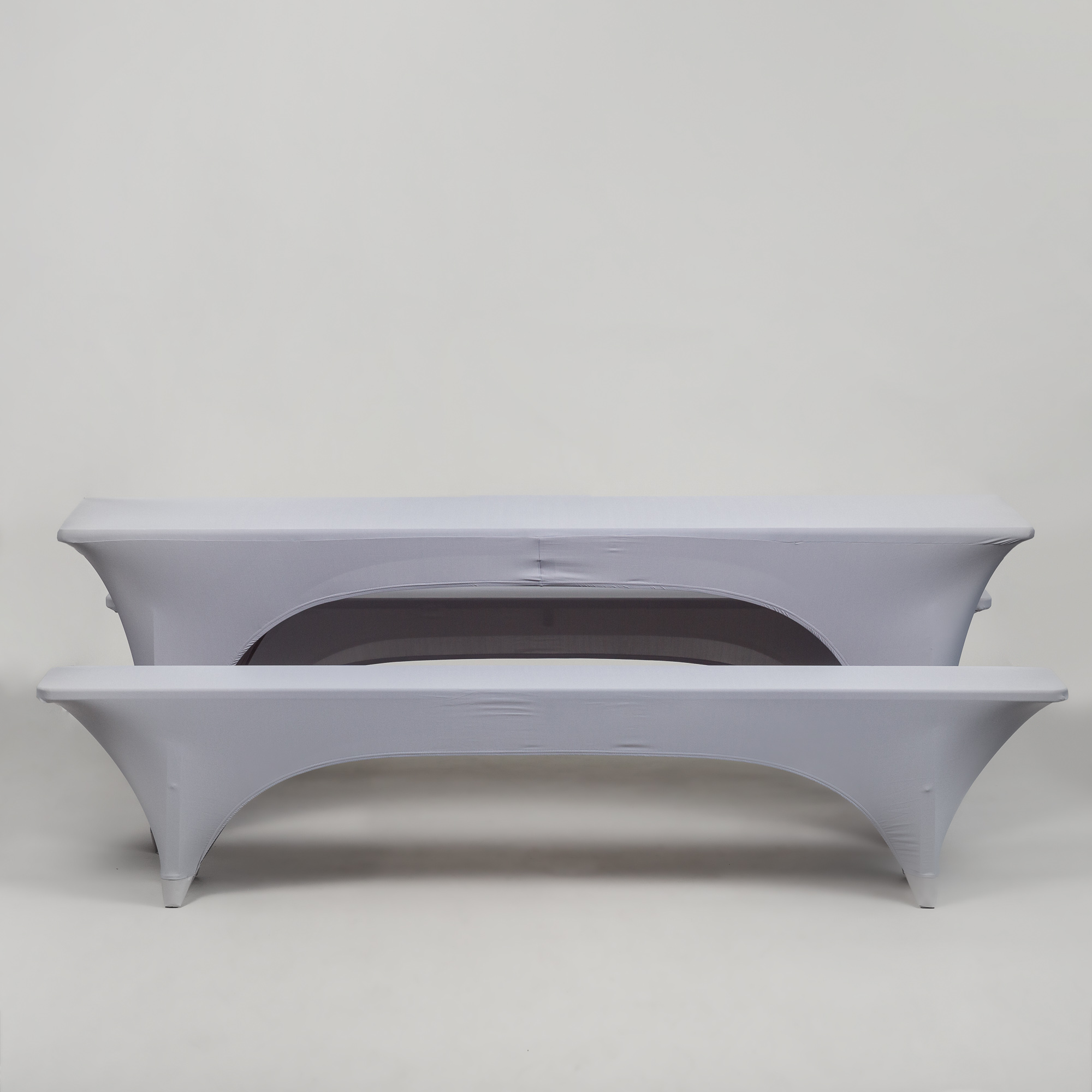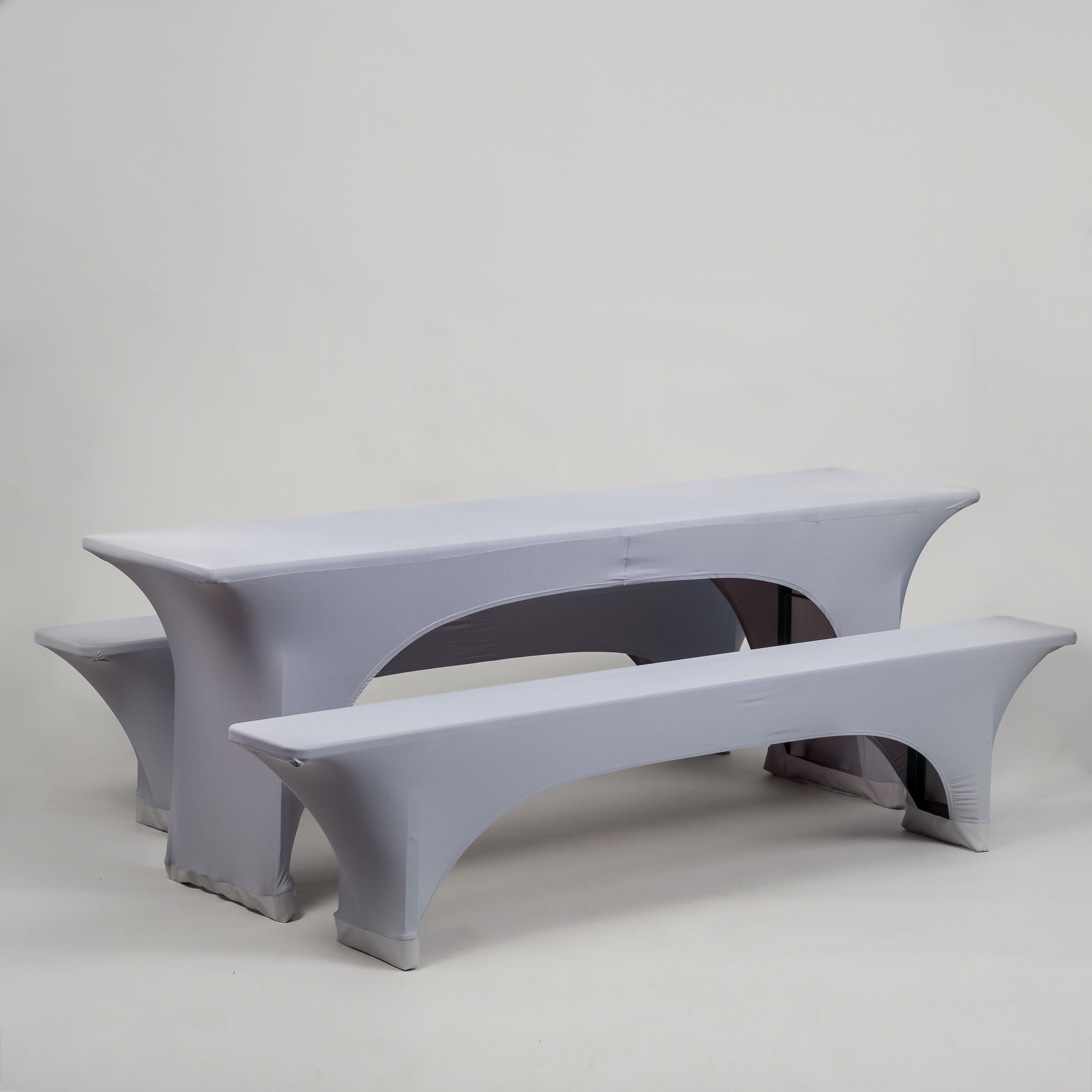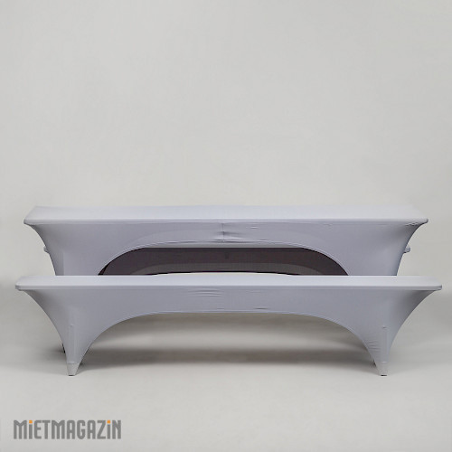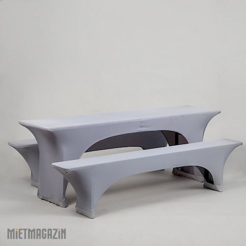 1 Tisch- u. 2 Bankhussen; Polystretch hellgrau