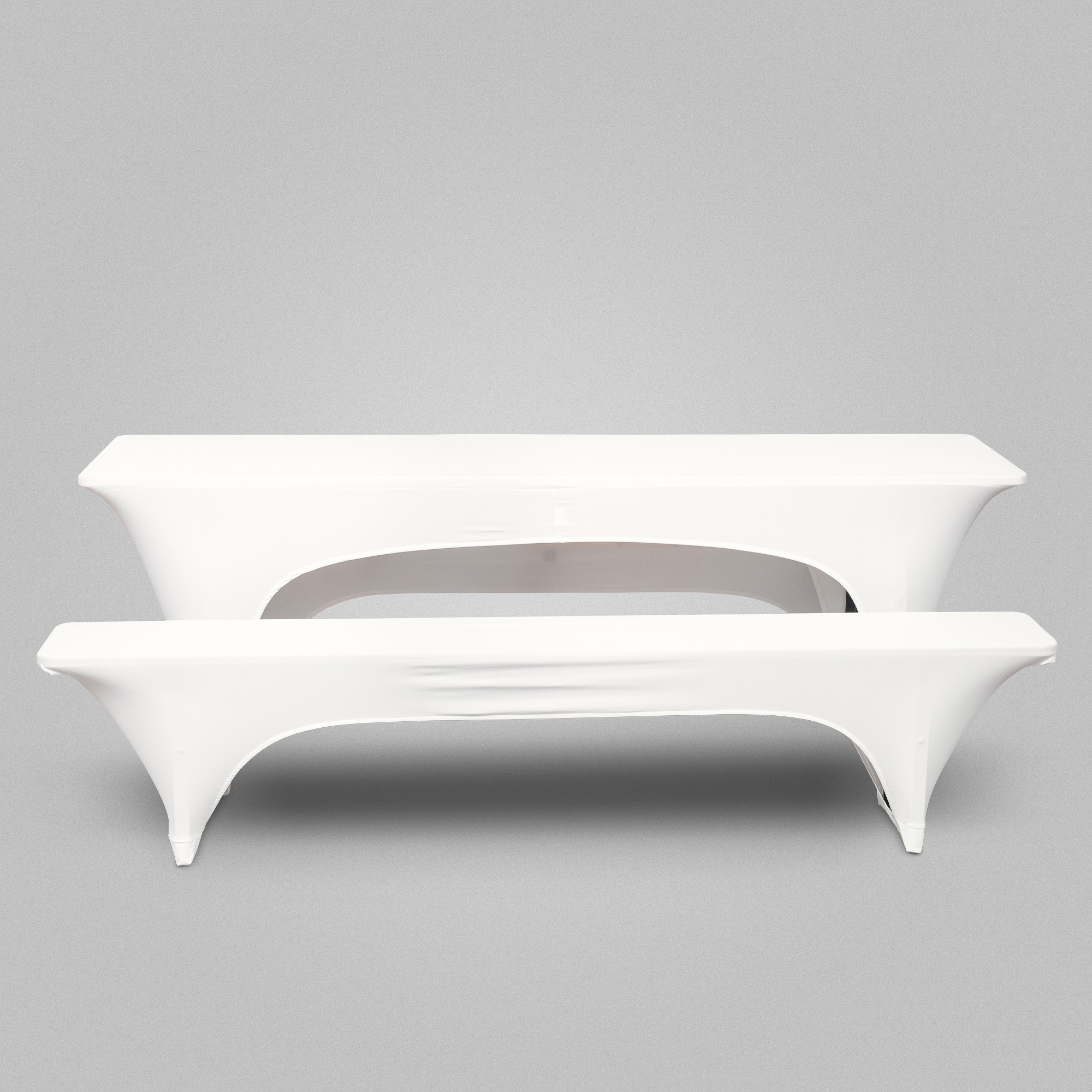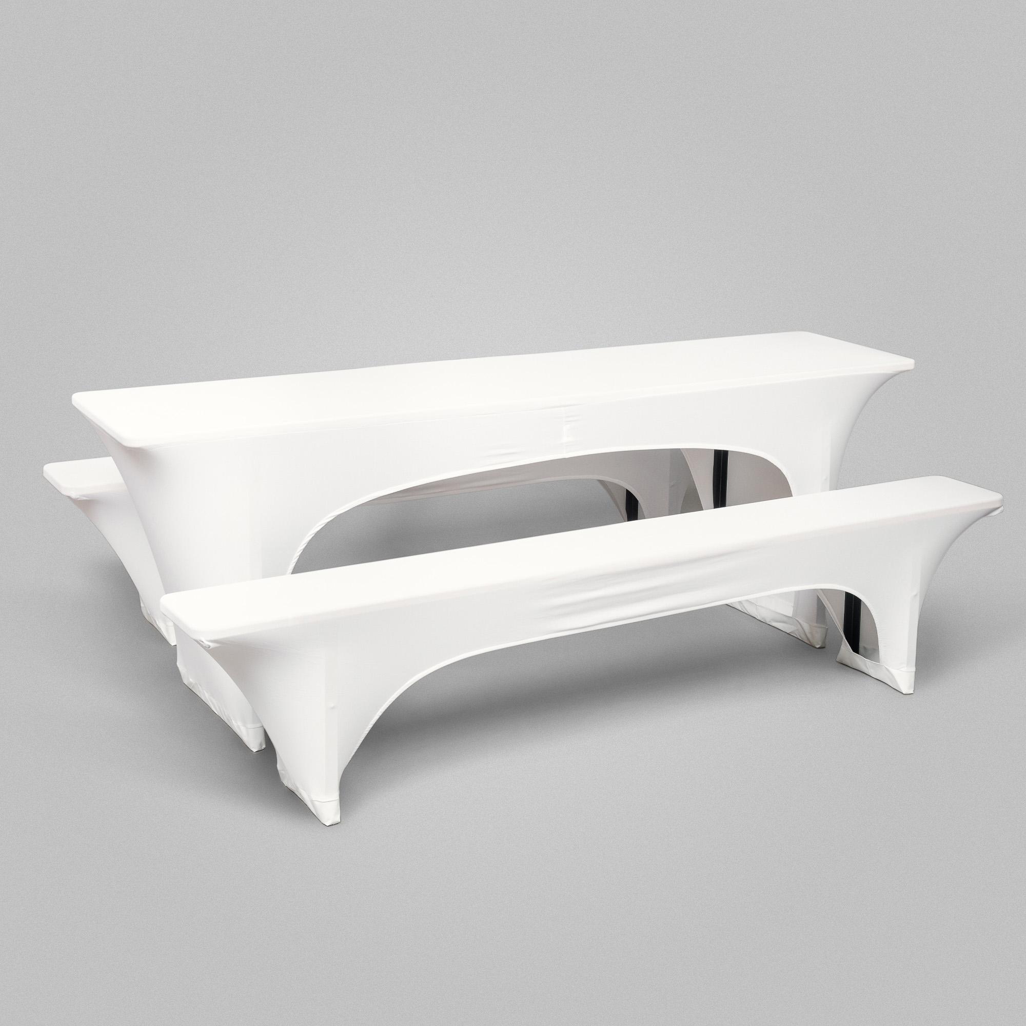1 Tisch- u. 2 Bankhussen; Polystretch weiß
