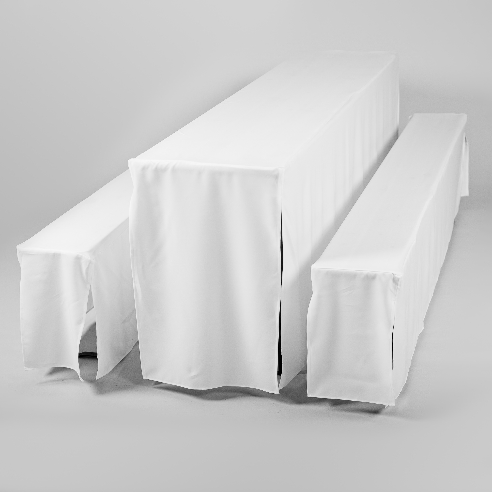 1 Tisch- u. 2 Bankhussen; Textil weiß